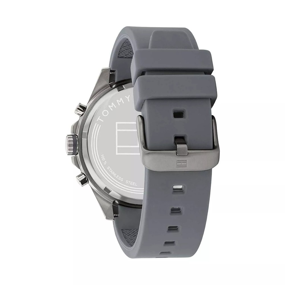 Item Brand Tommy Hilfiger Series Max Gender Men's Model 1791972 Brand Origin USA Case Case Size 45mm Case Thickness 10mm Case Material Stainless Steel Case Color Grey Case Shape Round Case Back Solid Dial Dial Color White Crystal Scratch Resistant Mineral Crown Pull / Push Bezel Fixed Bezel Color Grey Bezel Material Stainless Steel Movement Movement Quartz Band Band Material Rubber Band Type Strap Band Width 21mm Band Color Grey Clasp Tang Additional Information Water Resistance 50 Meters / 165 Feet Functions Day, Date, Hour, Minute, Second Watch Style Dress Warranty 2 Years Also Known As 1791972