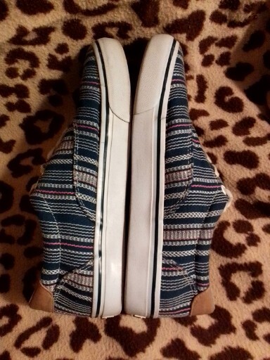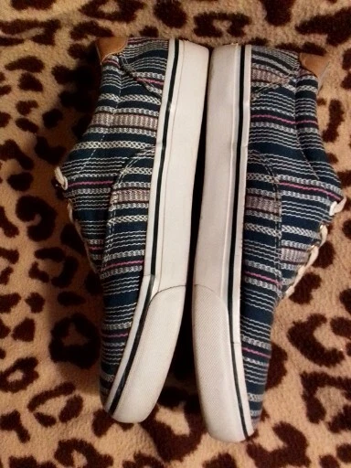 Elevate your casual style with these Tommy Hilfiger Awmaritza boat shoes. Perfect for any occasion, whether it's a day out on the town or a day at the office, these shoes feature a closed toe and lace-up closure for a secure fit. The cotton blend upper material is breathable and comfortable, while the fabric lining material adds an extra layer of comfort. These limited edition shoes are lightweight and non-slip, making them perfect for any season. The multicolor striped pattern and hipster, school, hippie, graffiti, college, 90s, southwestern, and retro themes add a touch of personality to any outfit. Available in men's US shoe size 9.5 and UK shoe size 9, these shoes are a must-have addition to any shoe collection.