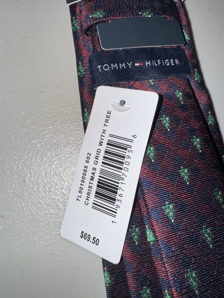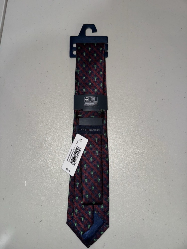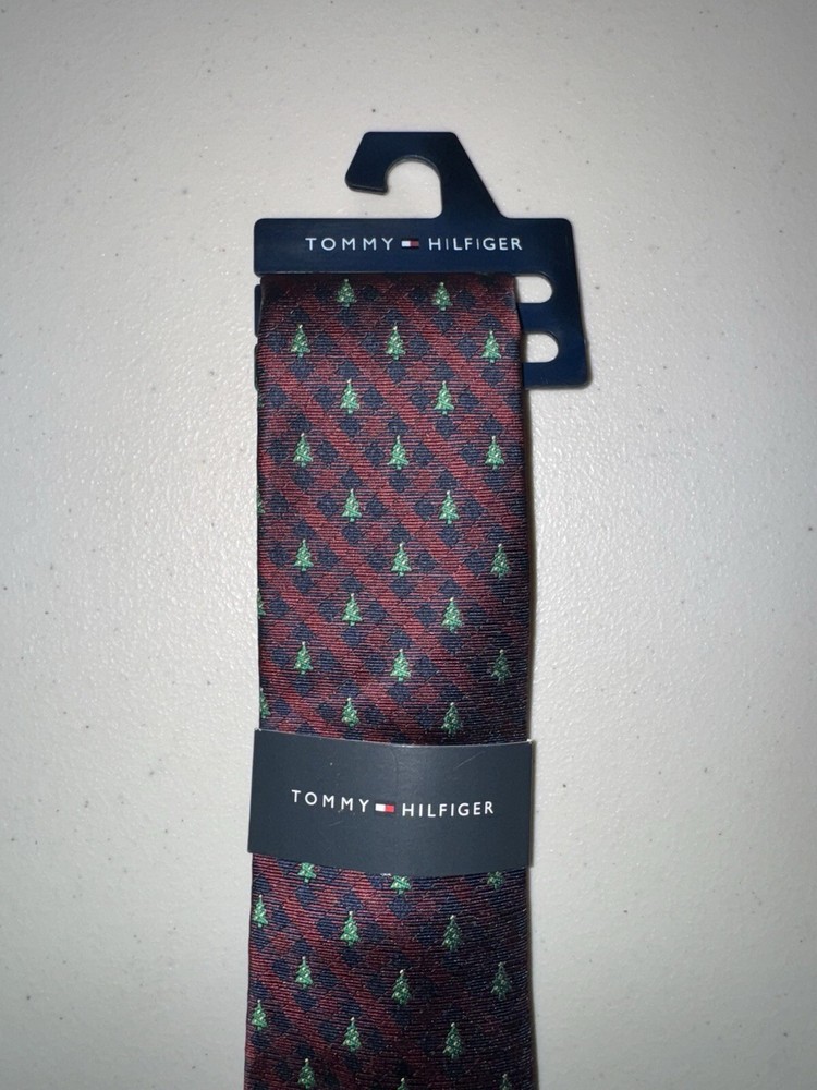 Tommy Hilfiger Men's Burgandary Christmas Grid W Tree Tie $69.50