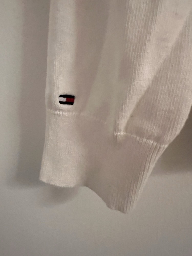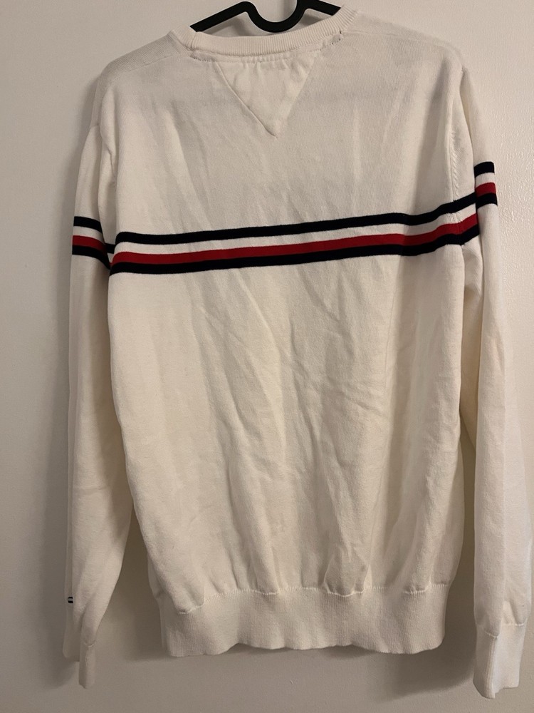 The Tommy Hilfiger Men’s Crewneck Cotton Sweater in Striped White Red Blue is a stylish and versatile piece of clothing for men. Made from comfortable cotton material, this sweater features a classic crew neck and a pullover style, making it perfect for all seasons. The striped pattern and red, white, and blue colors add a pop of color to any outfit. With its brand logo accents, this sweater is a timeless addition to any wardrobe, suitable for activities like riding, walking, yoga, and hiking.