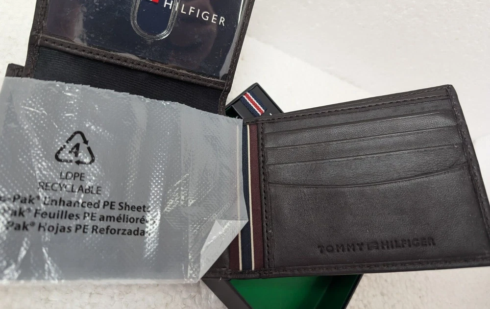 Elevate your everyday style with this brand new Tommy Hilfiger Passcase & Valet Men's Wallet in a sleek brown leather design. This bifold wallet is perfect for the modern man on the go, offering both practicality and sophistication. Keep your essentials organized with multiple card slots, a clear ID window, and a convenient valet feature. Complete with the iconic Tommy Hilfiger logo, this wallet comes in its original box, making it an ideal gift for yourself or a loved one.
