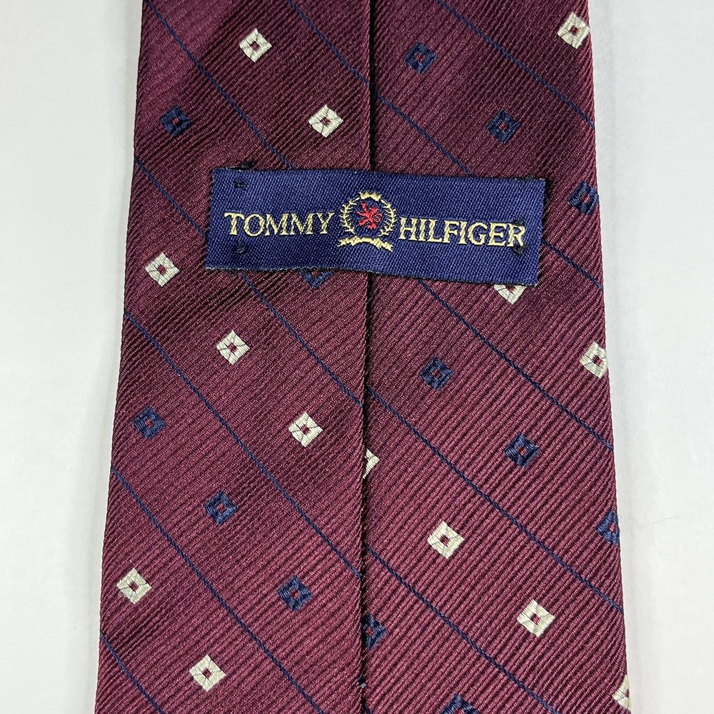 Tommy Hilfiger Men's Necktie Tie Neckwear Silk 57”x4” Burgundy Diamond Striped Item in great condition