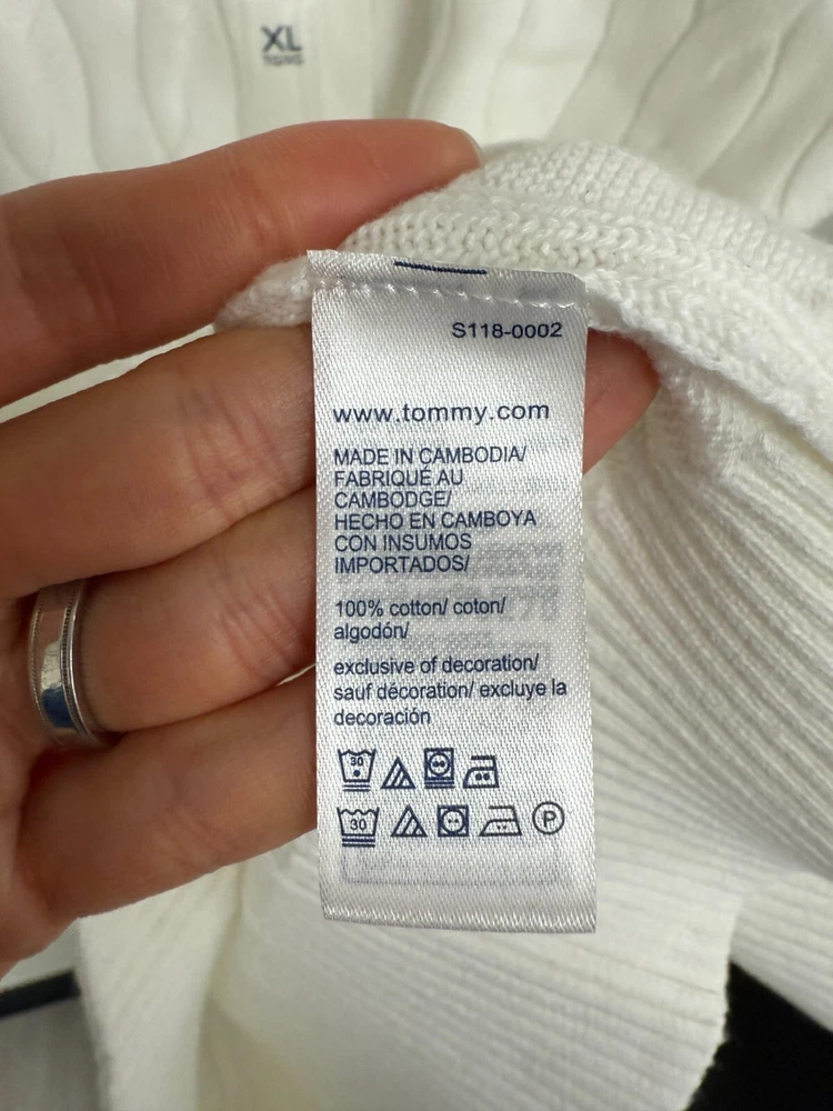 Brand New! Tommy Hilfiger Men's Cable Knit Sweater 78JB180 [SIZE XL] THE DETAILS 100% COTTON MADE IN CAMBODIA Shippin g Domestic (48 states of the U.S.) - Shipping via UPS or USPS (2 ~ 4 Business days) - We will provide you with a Delivery Confirmation Number that allows you to track your package. Please allow USPS 24 hours to update the status of your package. - Please make sure that you provide us with the correct shipping address. If the package gets returned to us due to an insufficient address, you will be asked to pay for reshipping your item. Return Policy Final Sale.
