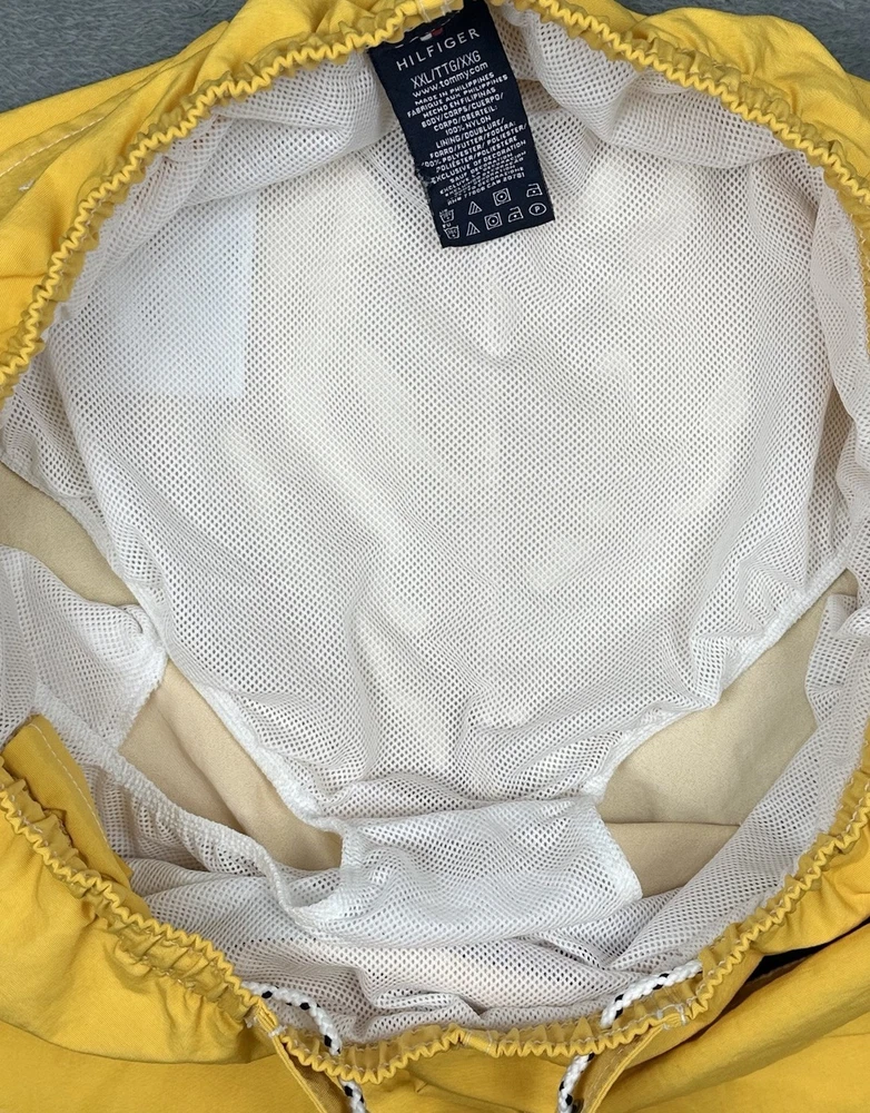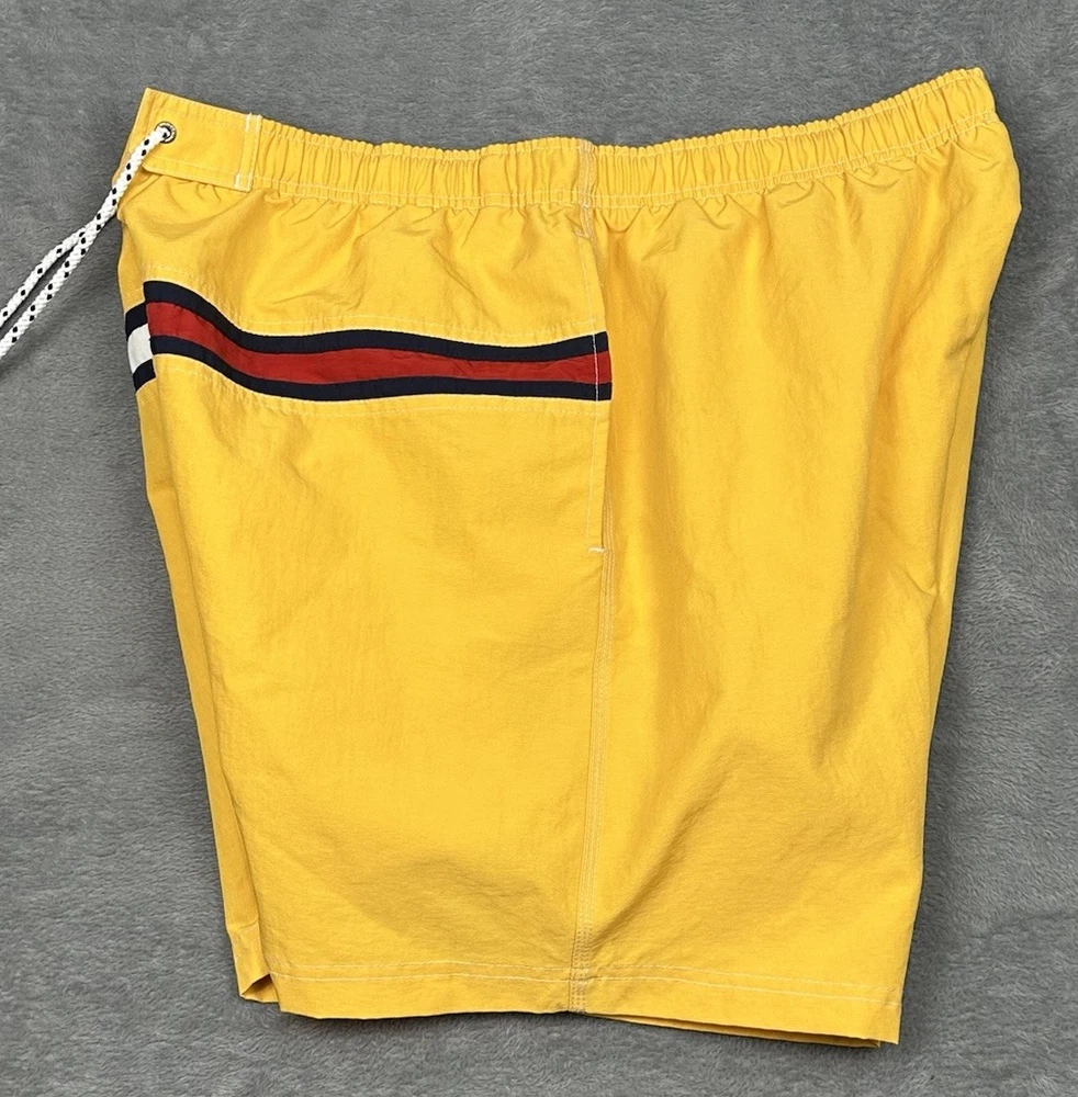 Tommy Hilfiger Swim Trunks Mens XXL Yellow Tommy Flag 6" Inseam Pockets NEW Brand new swim trunks/never worn. Waist laying flat is 38" but expands to about 41-42". Please see measurements in photos. I ship next business day, but sometimes same business day and Saturday when possible. Please reach out if you have any questions. I am open to offers! Feel free to check out other items in my store. Thanks!