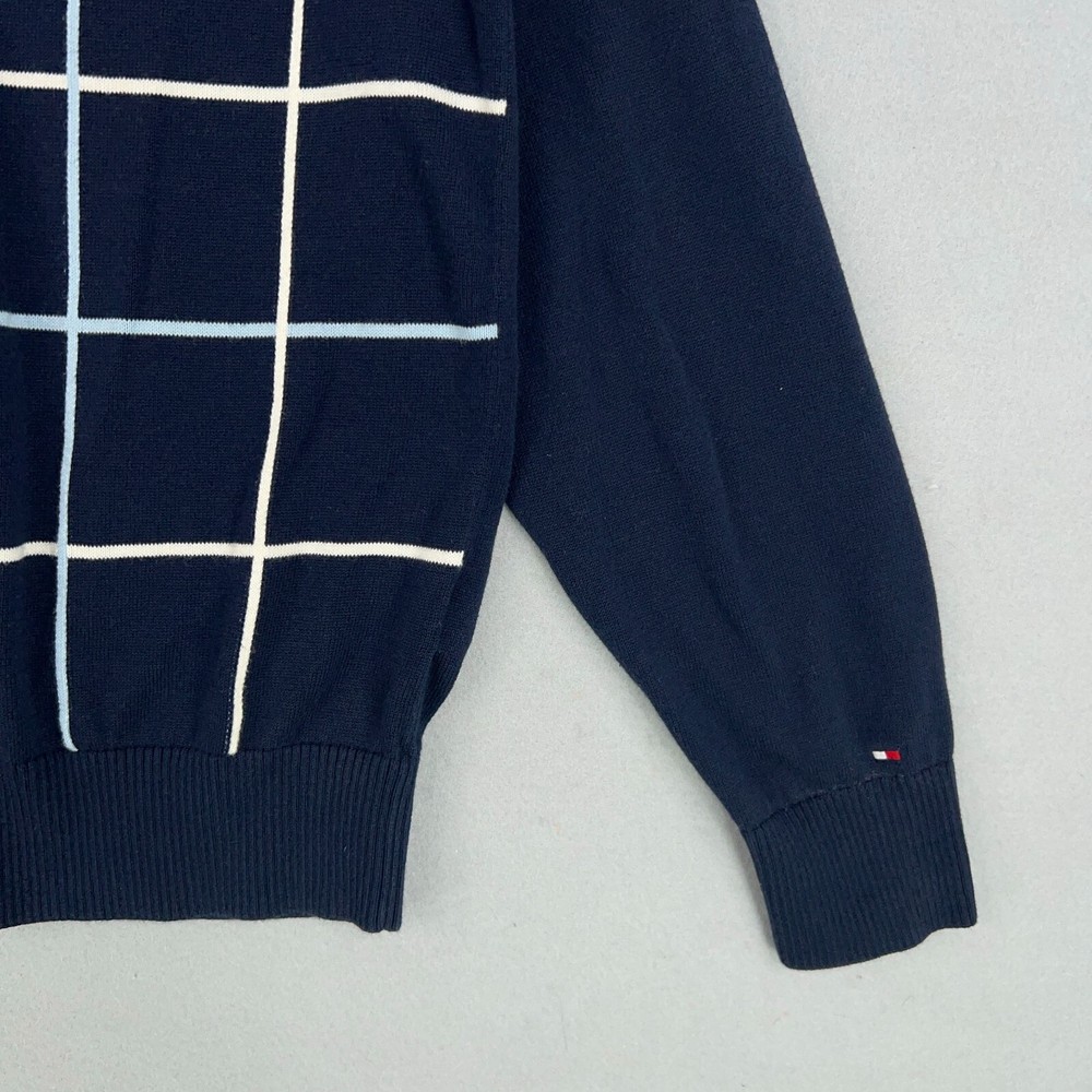 Tommy Hilfiger Sweater Mens Medium Navy Blue Check Pullover Preppy Teacher Dad Condition: - Very good used condition. - No rips, stains, or holes. - Nice pattern. Size: - Mens medium Measurements: - Previous washings may change the sizing written on the tag. - Please refer to the photos above for all measurements. - Please compare our measurements to that of one of your favorite garments. - Please note, item measurements are approximate. All items are bagged and sealed after being photographed, then stored in a smoke free environment to ensure the item is exactly the same as when photographed. I carefully package and ship daily. Feel free to contact me with any questions. All items have been washed per eBay standards & policies.
