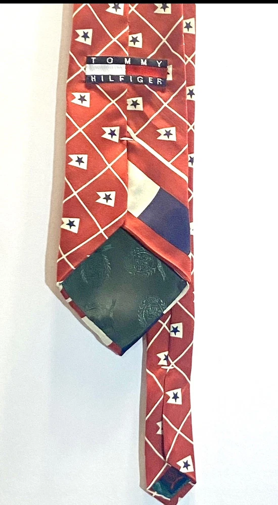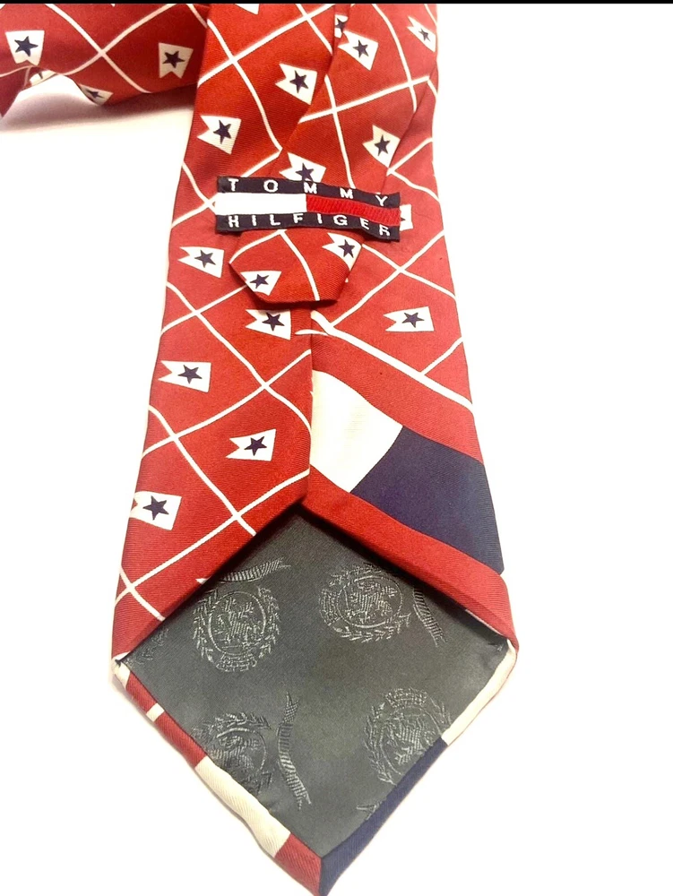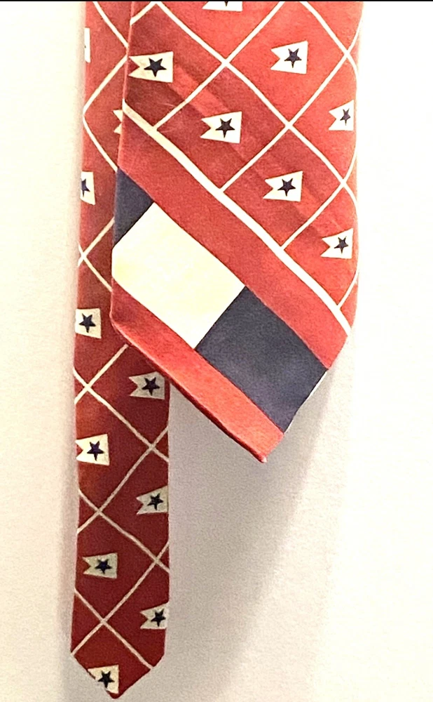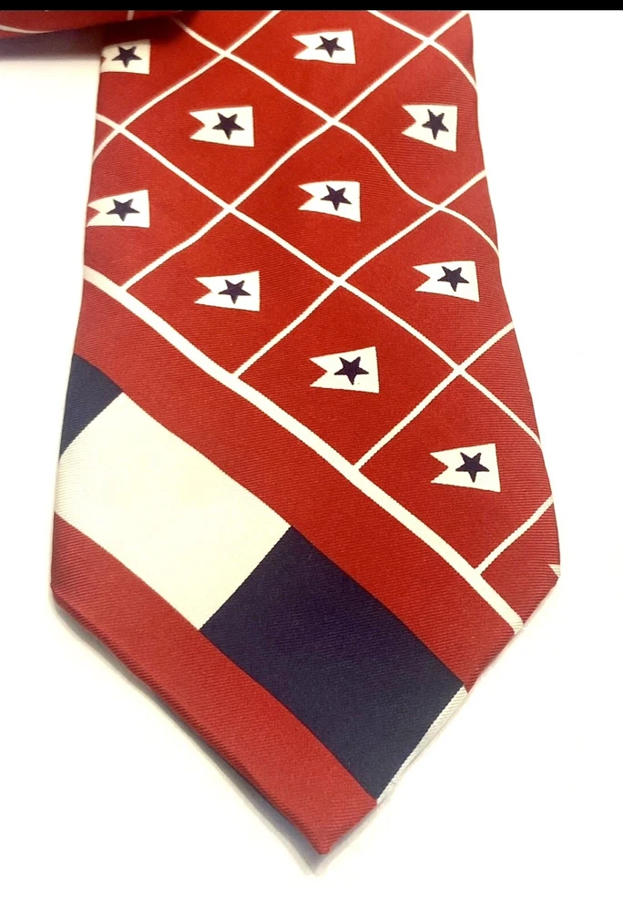 Tommy Hilfiger red, white and blue Diamond star flag vintage style tie. Gently used. Material unknown.