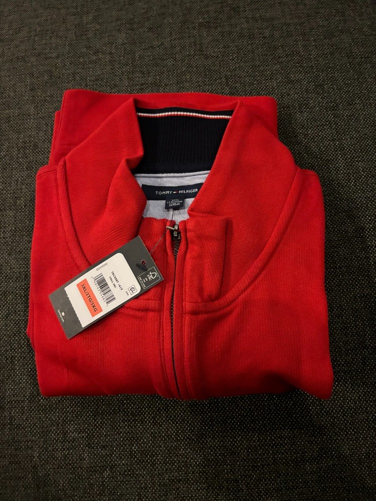 This red Tommy Hilfiger sweater is a must-have for any stylish man's wardrobe. Made with high-quality cotton material, this jacket is both comfortable and durable. The jacket is designed with a regular size type and a 3XL size, perfect for men of all sizes. The jacket's vibrant red color adds a pop of color to any outfit, making it a great choice for casual and formal occasions alike. The cotton lining material ensures that the jacket is comfortable to wear all day long. With its classic style and Tommy Hilfiger branding, this sweater is a great addition to any man's wardrobe.