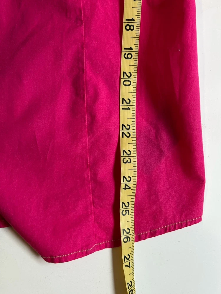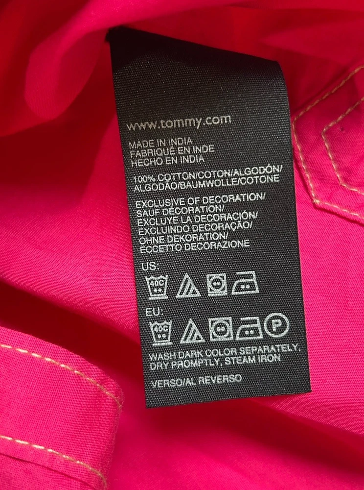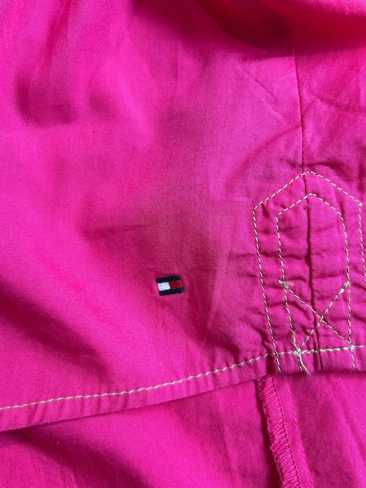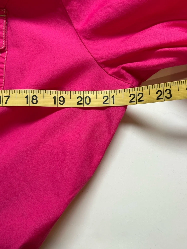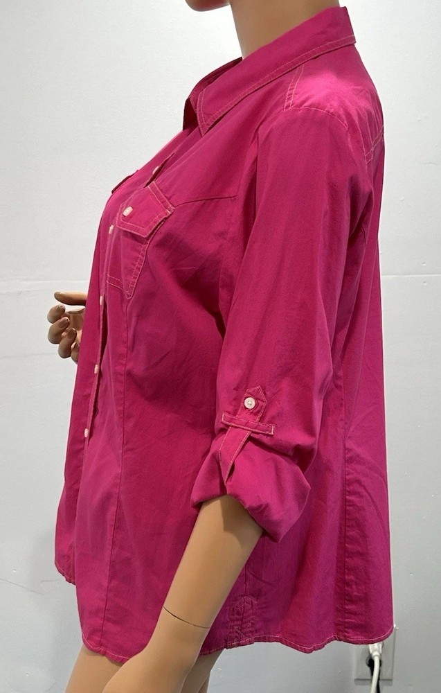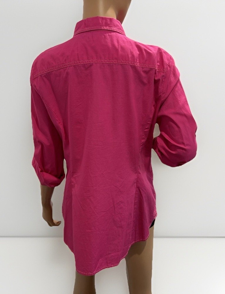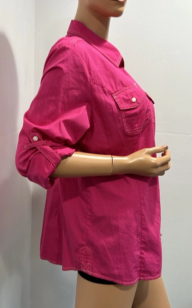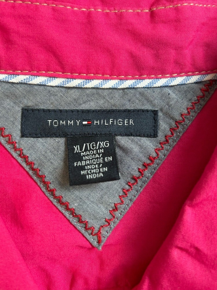 This Tommy Hilfiger women's blouse in XL size is a classic and versatile piece perfect for various occasions such as travel, casual wear, or work. The blouse features a collared neckline with a button closure, long sleeves, and a solid pink color. Made from cotton fabric, it is machine washable and suitable for all seasons. Additionally, it has a wide strap and is accented with button detailing, giving it a stylish and timeless look. Perfect for the modern woman looking for a wardrobe staple that combines comfort and style.