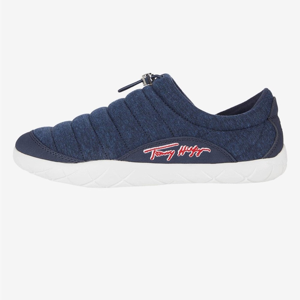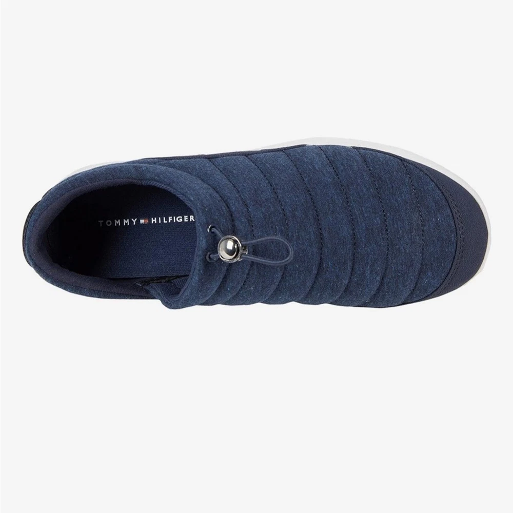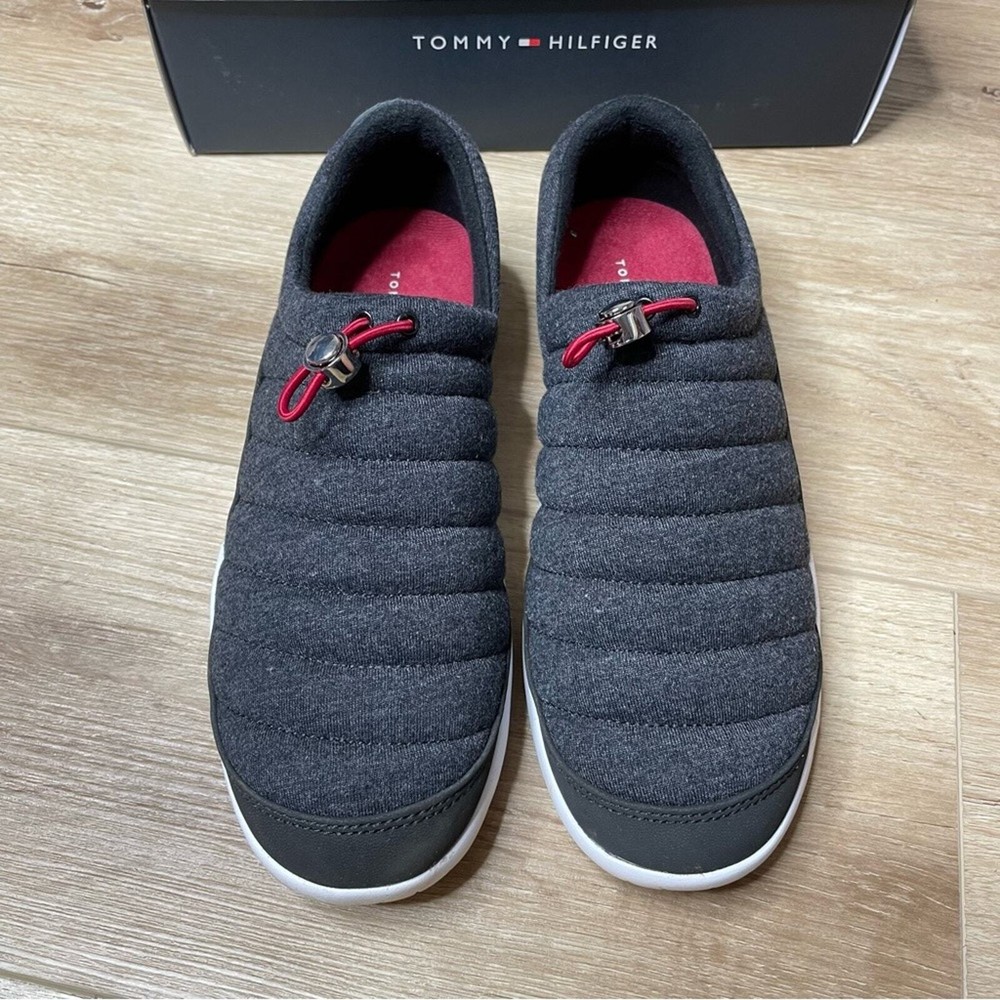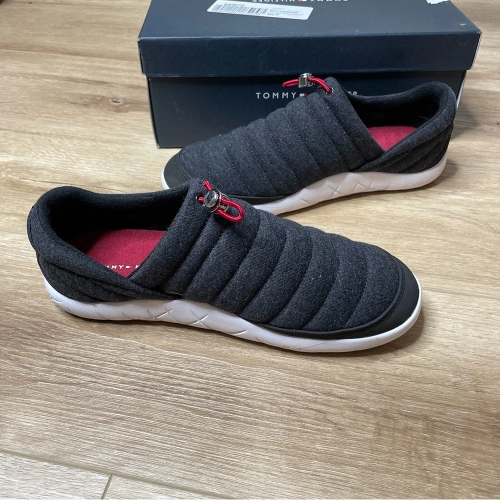 Gently used and in good condition Tommy Hilfiger Kampz Slipper Shoes Color: Black Removable insole Fleece, insulated upper Textile & synthetic upper Textile lining & insole Synthetic outsole Size 8