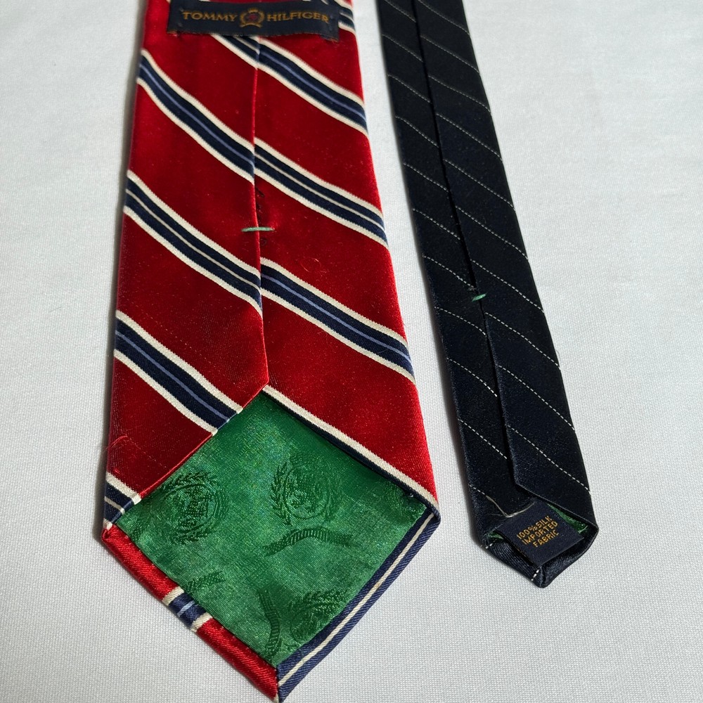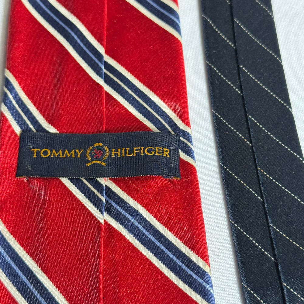 Country/Region of Manufacture: United States Item Length: Classic (57"-60") Seller Notes: “very nice condition” Brand: Tommy Hilfiger Color: Red Fabric Type: Silk Blend Department: Men Type: Tie Pattern: Striped