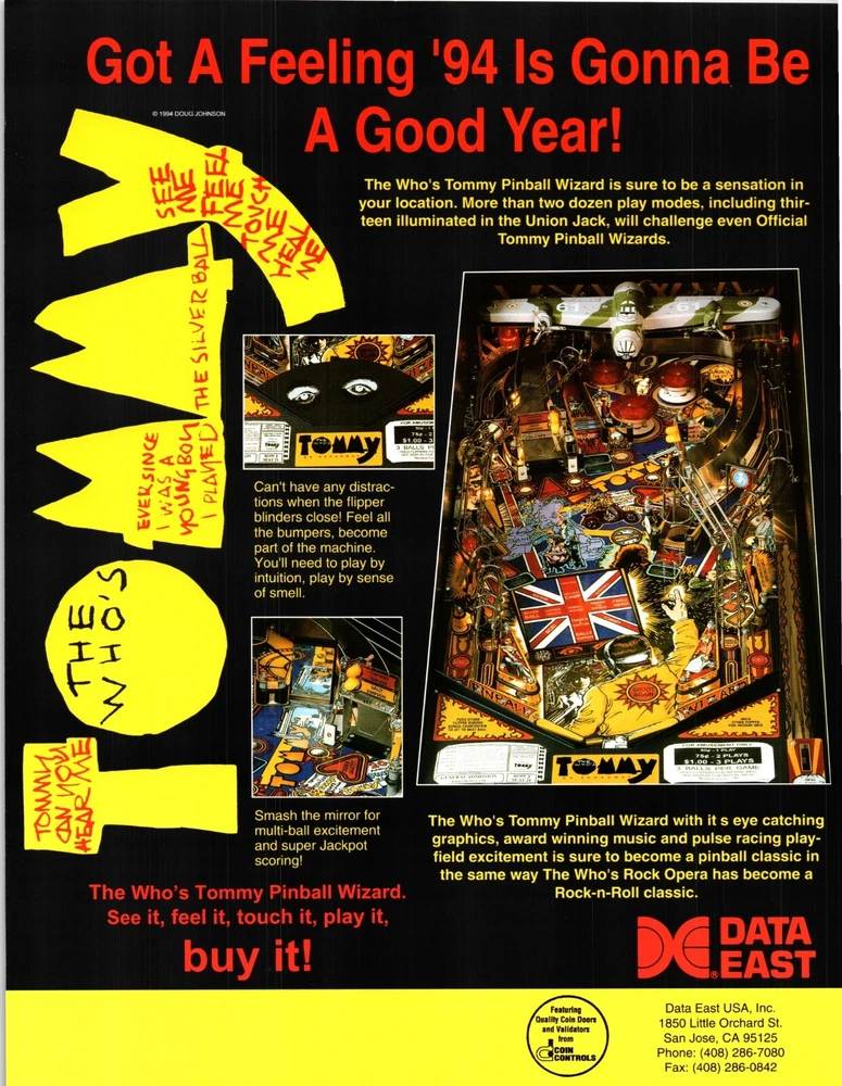 This is an original vintage game art flyer for the Tommy Pinball machine made by Data East in 1994. The flyer measures 8.5 inches by 11 inches and features The Who. It is a great piece of collectible merchandise and memorabilia for pinball and arcade enthusiasts. The flyer was made in the United States and is in excellent condition. Add this rare and unique item to your collection today! Original vintage 8.5" x 11" paper promo sales flyer. Single page double sided artwork sheet. Has light wear. Flyers are perfect for framing and make great wall art. A flyer is an paper promotional advertising art print sheet made for coin operated amusement arcade games. Also called a circular, brochure, pamphlet, or flier. Sheet protector included. More related items for sale in our store.