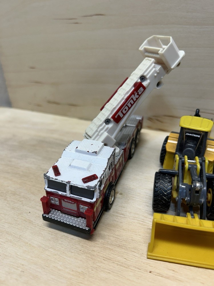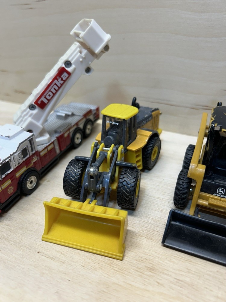 Tonka firetruck, John Deere Skid Steer, John Deere Loader, Delivery Truck