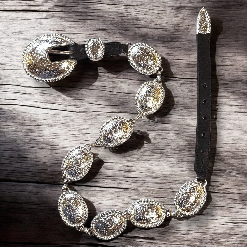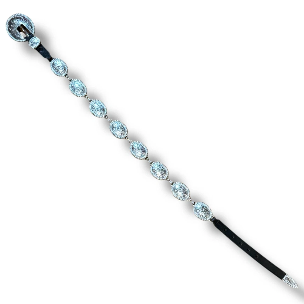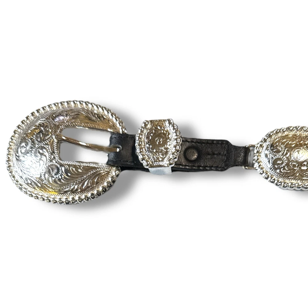 Tony Lama Concho Belt Womens Black Leather and Silver Filigree Conchos Cowgirl S