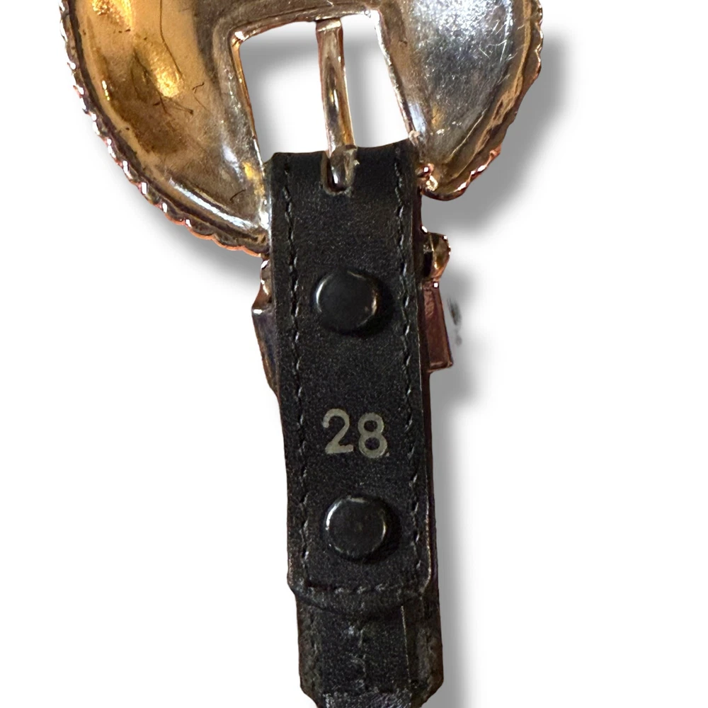 Size Type: Regular Theme: 80s, 90s, American, Western, Southwestern, Cowgirl, Cow, Horse, Classic, College, Equestrian, Farm, Hippie, Hipster, Retro, Robots, Rockabilly, Rodeo, Texas, University Waist Size: 26-28 in Department: Women Character: Cowgirl Brand: Tony Lama Accents: Buckle, Medallion Color: Black Vintage: No Hardware Material: Silver Size: 28 Handmade: Yes Personalize: No Type: Belt Belt Width: Normal Material: Leather, Metal Style: Concho Belt Pattern: Solid