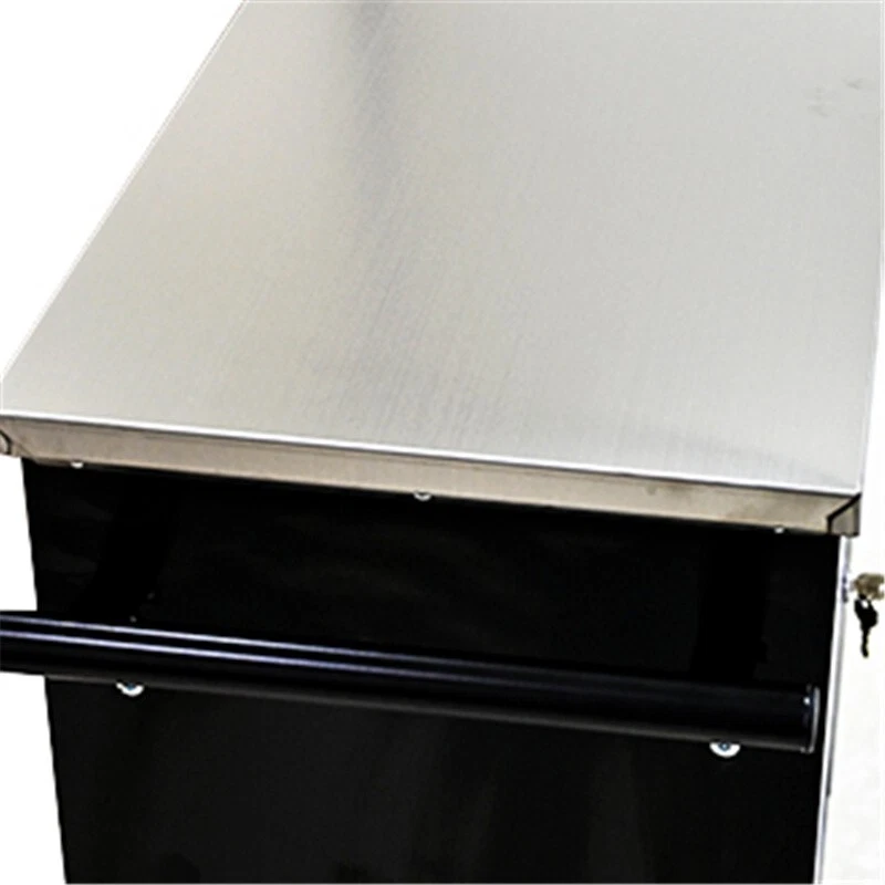 Features and Details: This assembly trolley has 4 steering wheels, 2 of which with parking brakes, so you can move the trolley freely in the garage, but also stop in one place. The storage surface provides additional space for storing and arranging tools you often need. The opening and closing of the drawers of the tool cabinet is very gentle thanks to the ball-bearing drawers. The robust and powder-coated steel construction is used for high wear resistance. This is a set of cabinets, can use a round hook at the bottom of the table to connect another tool car, thus forming a combination. Specification: Color:Black+Blue Material:Cold Rolled Steel Surface Finish:Powder Coating Casters:4" Casters (2PCS with brake and 2PCS without brake) Product Size (with wheels and countertops): 25.91*13.58*26.46INCH Package Size:27.36*15.16*28.94INCH Size (with countertops):25.91*13.58*25.98INCH Net Weight:58.86LBS Gross Weight:65.7LBS