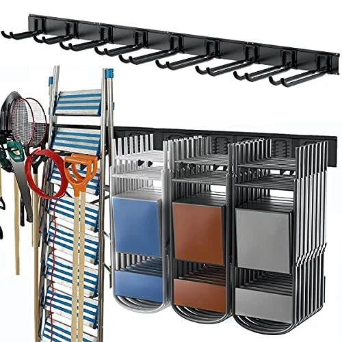 Return Policy Fast Delivery Trusted seller Tool Storage Rack, Heavy Duty Steel Garage Wall Mount Garden Tool Organizer for Ladders, Chairs, Shovels, Broom, Power tools (8-Pack 5.7"-11" Mixed Hooks, up to 800 lbs) Product Description Powder-coated Finish Rails & Rubber-coated Sleeves Hooks Perfect wall mount garage tool organizer storage system. Ski snowboard storage rack, garage bike rack, cleaning supplies organizer, garden tool organization such as ladders, lawn trimmers, strollers, folding chairs, shovels, rakes, power tools, etc. Convenient snap-hook patented design. Easy to take-off and snap-on hooks. Quickly swap hooks' positions and quantities to suit free storage solutions. No need to reinstall steel rails. Efficient and neat storage solution. A variety of tools certainly requires different size hooks for storage. 8-pack heavy-duty mixed hooks. 4-pack 11inch hooks, 2-pack 8.6inch hooks, 2-pack 5.7inch hooks. Meet your utility tools organization. Powder-coated rails & rubber-coated sleeves. Excellent durability with anti-rust, anti-crack, anti-scratch, and anti-slip functions. Heavy-gauge steel construction provides safety loading up to 800lbs. Certified by GS. Safety d. Easy to install. All you need is an electric drill, and perhaps a level to ensure that it is lined up in a row for mounting on the studs on the wall. Install to drywall or other paneled wall sheeting, must be located to solid structures. (Includes all installation hardware.) Shipping Returns Payment Shipping Shipping is FREE to all addresses other than APO/PO boxes in the lower 48 states. All our stock ships from US-based warehouses. Shipped via USPS or UPS (depending on location and package weight) Unless stated otherwise, all orders will ship within 24-72 hours of your payment being processed. Check our feedback to see the great reviews of FAST shipping we offer. Returns Seller does not accept returns Payment We currently accept payment via eBay managed payments only. Once payment is cleared, we will dispatch your shipment within 1-3 business days. Please refer to the "Shipping" tab for more information regarding shipping speed to your destination.