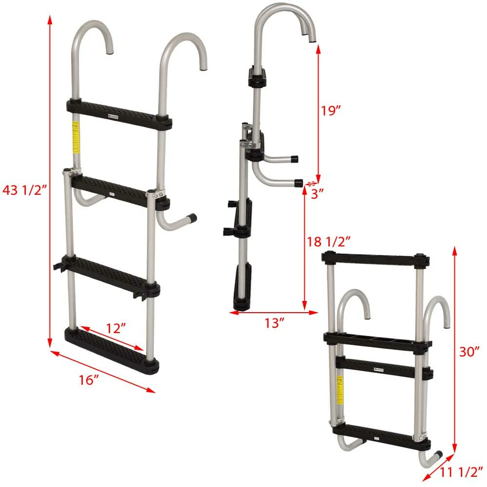 Hard to find original boat parts - Up to 70% off in our eBay store! Toonmate Pontoon Boat Removable Folding Ladder S-1863 | 4-Step We're your port for thousands of hard to find boat parts, original manufacturer's parts and marine surplus. Check out this deal!! Description Boat part number 1113462 is a new removable folding 4-step pontoon ladder from Toonmate, part number S-1863 . This 4-step removable ladder is constructed out of 1" Dia. aluminum tubing with a matte finish. Features black poly treads. It measures approximately 43 1/2" H x 13" D x 16" W overall when deployed and approximately 30" L x 11 1/2" D x 16" W overall when stowed. It mounts via (6) 1/8" Dia. mounting holes on grommets. Please see photos for additional measurements. Specifications: Part Manufacturer: Toonmate Part Number: S-1863 Material: Aluminum Color: Silver / Black Deployed Dimensions: 43 1/2" H x 13" D x 16" W Stowed Dimensions: 30" L x 11 1/2" D x 16" W Mounts: (6) 1/8" Dia. Mounting Holes Sold as seen in pictures. Customers please note every computer shows colors differently. All measurements are approximate. Hardware and instruction / installation manual not included. GLS Stock Number 1113462--FK660 A Message from Great Lakes Skipper We stand behind our products and maintain great relationships with our customers. If you are having an issue, please contact us with an eBay message first before opening an eBay case and we will make every effort to resolve any concerns. Shipping & Delivery Does this item have a Free Shipping option? Check the shipping tab. If you see a Free Shipping option, we will cover the shipping cost to any physical address located in the lower 48 United States at no extra charge. The physical address you provide must be deliverable by ANY service of our choice. We reserve the right to choose the shipping company, so if you would prefer more control over the shipping feel free to choose a different service. Unfortunately, our free service does not permit shipping to PO Boxes, APO/FPO/DPO addresses, US Territories, Alaska, Hawaii or Puerto Rico. If the description above states that this will be a truckline or freight shipment, this means your item will arrive by a large commercial vehicle and the address you provide MUST be a commercial business with either a loading dock or forklift to remove the item from the truck. If the carrier determines your address is a residence (or a business in a residential neighbourhood), by ordering this item you agree to pay any additional residential delivery, redelivery and/or accesorial surcharges. Please send us a message with any questions regarding freight shipments. International freight shipments will incur additional customs and governmental charges which are the responsibility of the buyer. Buying more than one item? Great Lakes Skipper is happy to combine multiple eBay items into one order. Please send us a message and we will be happy to send you a custom shipping quote for your items. Special note for buyers choosing US Postal Priority Mail International Shipping We currently offer USPS Priority International Mail shipping options to provide our international buyers more shipping choices. However, due to the USPS Mail Services high rates of loss, damage and poor insurance coverage, we are forced to reserve the right to ship higher value items by FedEx so your package(s) may be fully insured. Unfortunately, this may increase your shipping costs. When choosing USPS Priority International Mail as your shipping method, you understand we may reroute the package via FedEx and you agree to pay any additional costs incurred. If you would like to make special shipping arrangements or have any questions, please send us an eBay message before ordering. Visit our eBay store for more great deals! NEED MORE INFORMATION? For technical questions regarding installation, operation, boat compatibility, for this item please contact the part manufacturer or your boat dealer. For questions regarding this purchase, for example, item condition, color, dimensions, shipping costs, payment methods, combined shipping, etc., feel free to send us a message any time!