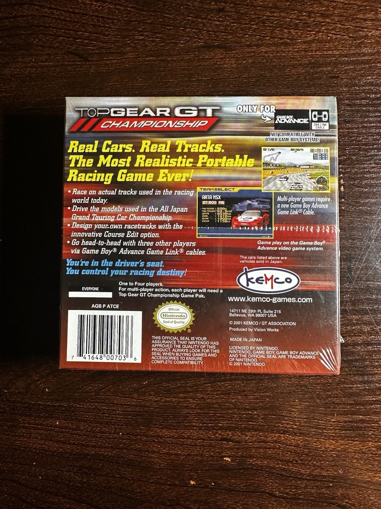 Game Name:Top Gear GT ChampionshipPublisher:KemcoFeatures:Manual Included, MultiplayerCountry of Origin:JapanRating:E-EveryoneRegion Code:NTSC-U/C (US/Canada)Platform:Nintendo Game Boy AdvanceMPN:AGB P ATCERelease Year:2001Genre:RacingVideo Game Series:Top GearSub-Genre:Car Racing