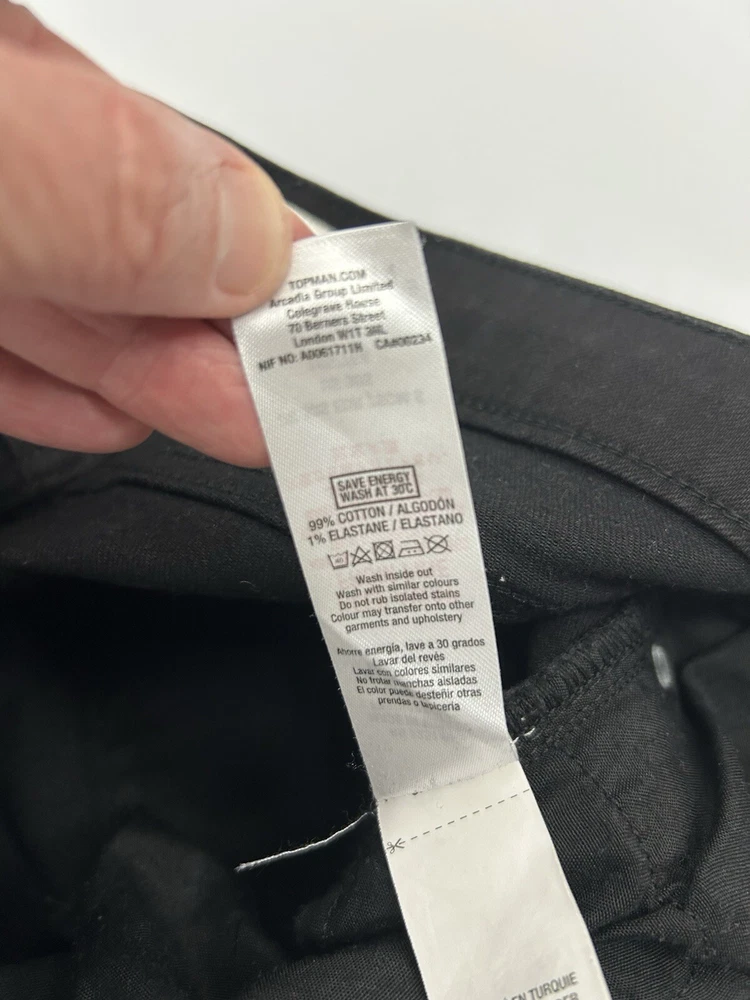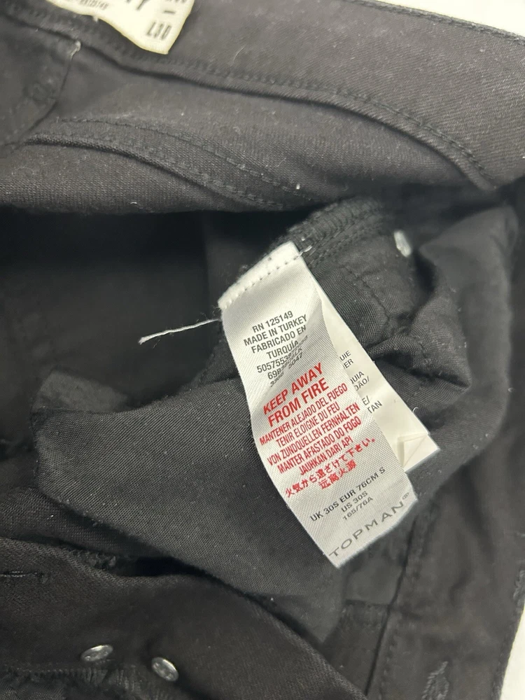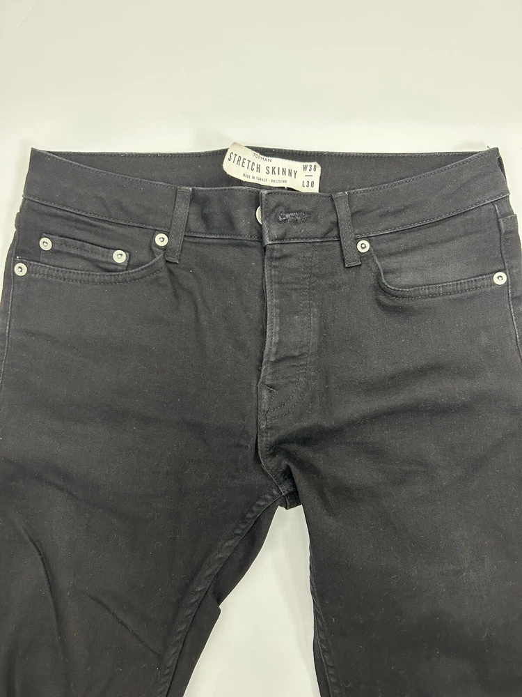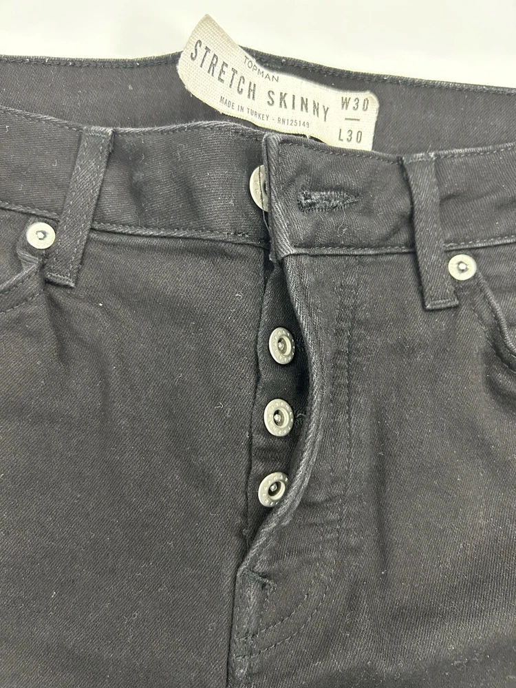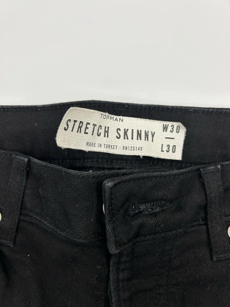 Topman Men's Stretch Skinny Distressed Rip Knee Denim Jeans Black Size 30 / 30 Nonsmoking home - barely worn