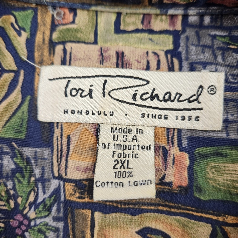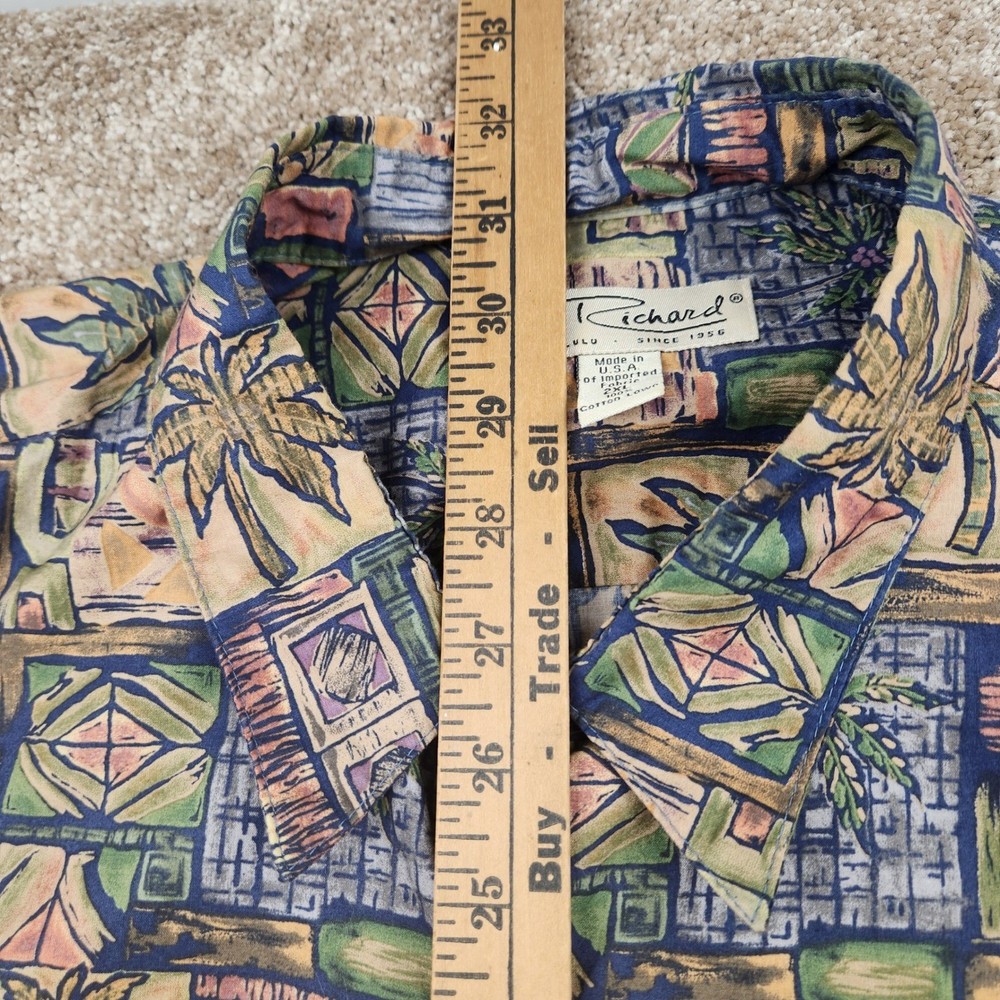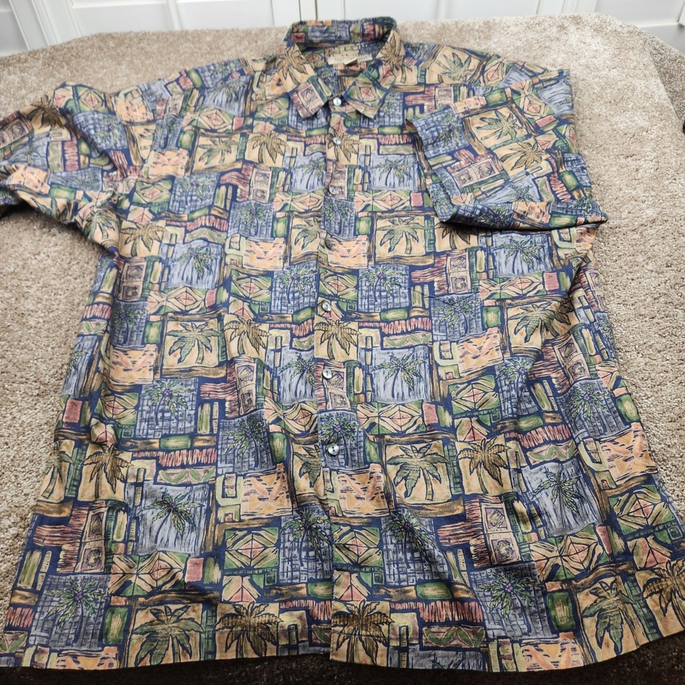 Transport yourself to paradise with this vibrant Tori Richard Hawaiian shirt. A captivating abstract print featuring lush palm trees and geometric shapes in a rich palette of blues greens and peaches adorns this luxurious cotton lawn fabric. The breathable material and classic button-down style ensure comfort and effortless cool. Perfect for a beach vacation resort wear or a casual island-inspired gathering. Measurements: • Pit to Pit: 26 in • Length: 32 in Sleeve Length: Short Sleeve Department: Men Fabric Type: Cotton Lawn Closure: Button Accents: Button Pattern: Graphic Print Theme: Beach, Retro, Colorful, Bohemian Material: Cotton Fit: Relaxed Features: Breathable, Easy Care Collar Style: Button-Down Type: Button-Up Type: Button-Up Neckline: Collared Occasion: Casual Keywords: Tori Richard shirt, mens Hawaiian, cotton lawn, palm tree print, abstract, Honolulu, vacation shirt, resort wear, island style, tropical, breathable, XXL, button down We sell high quality items at very affordable prices. Thank you for your interest.