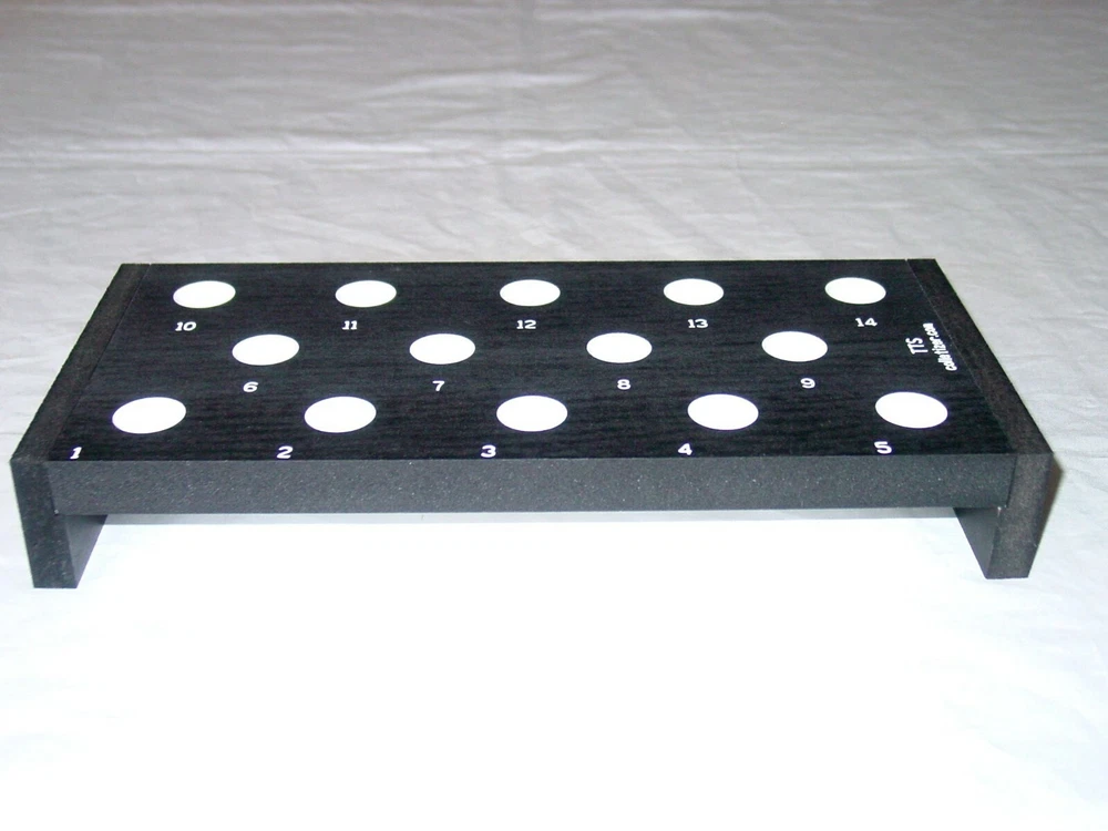 Tool Holder Rack Fits: Tormach TTS Tooling System 14 Holes Numbered for tool numbers or CNC queue 0.760" Pocket Dia. 5.5" x 11-5/8" 1.75" Tall Made in USA Made from PVC Legs made from Sealed MDF Lifetime Warranty