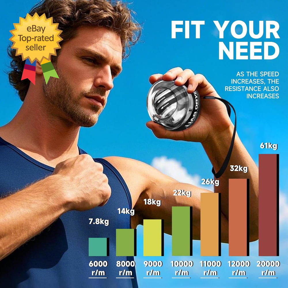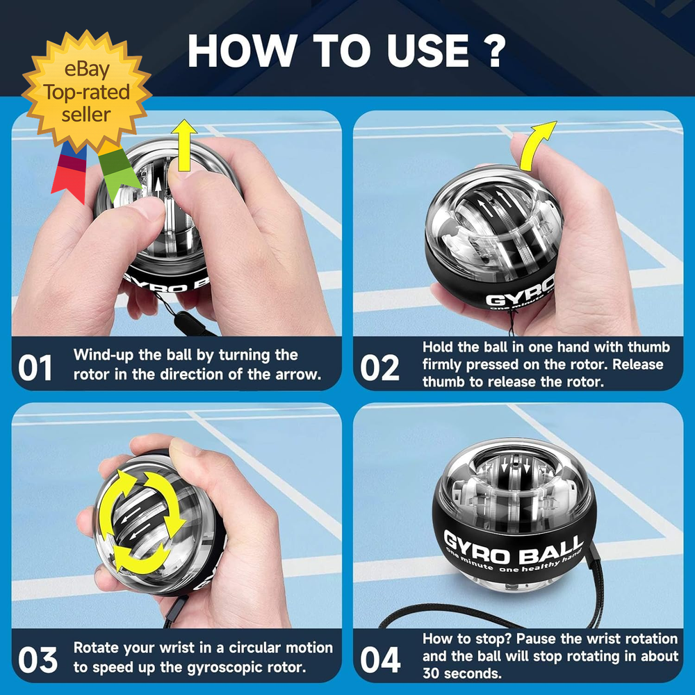 Store New Arrivals Add to Favorite View Feedback Contact Torque Ball Hand Exerciser Grip Strength Trainer Forearm Strengthener Wrist Power Description Unit Count 1.0 Count Style Safety Number of Items 1 Color Black Material Plastic or Metal Package Weight 0.33 Kilograms Item Weight 150 Grams Construction Type Plastic Item Dimensions LxWxH 2.1 x 2.7 x 0.04 inches Sport Exercise & Fitness Item Package Dimensions L x W x H 3.78 x 3.5 x 3.11 inches 【PRODUCT CONTAINS】Wrist gyro ball, brand card, ball sleeve, safety rope, gift box. 【GOOD FOR HEALTH】Using wrist gyro balls for exercise can alleviate problems such as wrist soreness and finger stiffness caused by prolonged fixed hand movements, and can also promote blood circulation. An interesting palm wrist gyro ball that can be used as a stress relieving toy, played at any time, and can also exercise arm muscles. 【EASY TO USE】Newly upgraded products that automatically starts without the need for a rope, making it easy to use. Simply rotate the core ball to start. 【BATTERY FREE DESIGN】Precision mechanical design, no battery required to provide power. The interaction between the rotation of the wrist and the internal ball core generates centrifugal force, which can maintain high-speed rotation. The faster the speed, the greater the force generated. ABOUT US We offer the best prices around on high quality products. Our E-store includes media such as books, movies, music and games while offering electronics, toys, sporting apparel, clothing, tools, general home, garden items and more. SHIPPING We are always working hard to ensure your package arrives as soon as possible. Please understand that some factors like weather, high postal traffic, and the performance of shipping companies are outside of our control. We offer free shipping to the lower 48 states and ship within 2 business days of payment, usually sooner. We do not accept P.O. Boxes. Please provide a physical address. For shipping outside of the continental USA, we only use eBay's Global Shipping Program.The item is shipped to KY and then sent to the rest of the world. International customers are responsible for all duties and taxes. Continue to check out in order to calculate costs for shipping the item to your country. Messages regarding eBay's Global Shipping Program MUST be directed at eBay EXCLUSIVELY. RETURNS We offer a 30-Day Return Policy on items which you are not completely satisfied with. You have the option for a full-refund or an exchange of the item. No returns are available on items shipped outside of the USA. PAYMENT We accept PayPal. CONTACT US This page content is yet to come Please ad us to your favorite seller and visit again later Thank You CUSTOMER SATISFACTION We try our very best to make sure every customer is completely satisfied. If there's a problem, message us! We're happy to help.