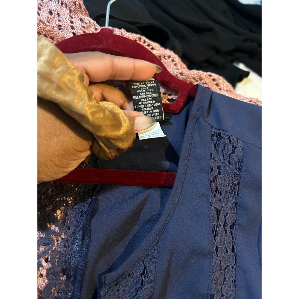 Float into effortless style with this enchanting navy blue tunic. Delicately crafted with intricate lace trim that adorns the neckline and back, this piece exudes a romantic, bohemian charm. The graceful, flowy silhouette drapes beautifully, ensuring comfort and confidence with every wear. The hi-lo hem adds a touch of modern flair, making it incredibly versatile. Perfect for a casual brunch with friends, an evening concert, or a relaxed date night. Type: Blouse Department: Women Style: Tunic Material: Polyester Neckline: V-Neck Sleeve Length: Long Sleeve Sleeve Type: Classic/Fitted Sleeve Accents: Crochet Pattern: Solid Theme: Boho, Bohemian Features: Lightweight, Easy Care Fit: Regular Keywords: Torrid, Navy Blue, Lace Trim, Long Sleeve, Tunic Top, Plus Size, Hi-Lo Hem, Flowy, Bohemian, Boho, Womens Top, Casual Top, Blouse, Womenswear ✨ Living the Brooklyn Dream ✨ Your one-stop shop for timeless style — men's, women's, shoes, and beauty finds, both new and preloved. Follow us for more curated looks and exclusive drops!