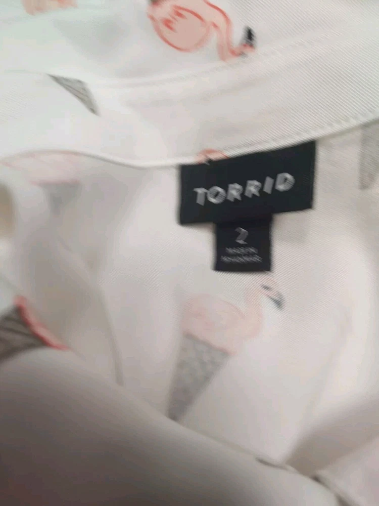 Gorgeous Torrid blouse as described in prime condition; seller is awesome! Free shipping is sweet on top of a good price. Thank you!