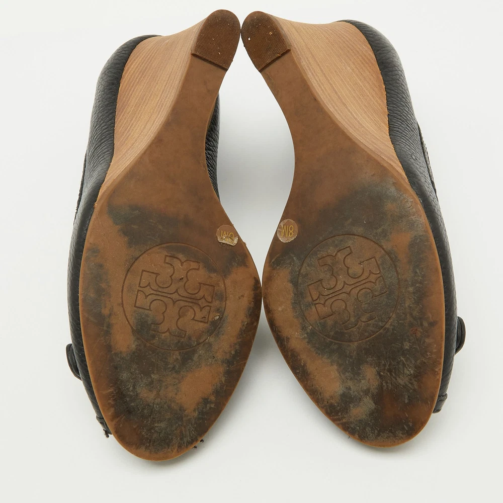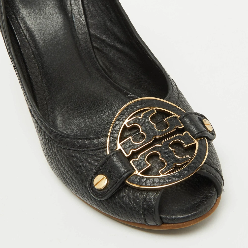 These Tory Burch pumps are a perfect blend of style and practicality, featuring black leather with a peep toe design. The iconic Tory Burch logo embellishes the front, adding a touch of sophistication. With a comfortable wedge heel, they’re ideal for both office wear and casual outings.Certified by The Luxury Closet - This item has gone through a detailed authentication process overseen by our experts. We offer a lifetime guarantee of authenticity on all our items. Import duties, taxes and charges are not included in the item price. These charges are the buyers responsibility. Please check with your country’s customs office to determine what these additional cost will be prior to buying. Our eBay Store About Us Contact Us Add to Favorite Sellers Tory Burch Black Leather Logo Peep Toe Wedge Pumps Size 38 $166.1 These Tory Burch pumps are a perfect blend of style and practicality, featuring black leather with a peep toe design. The iconic Tory Burch logo embellishes the front, adding a touch of sophistication. With a comfortable wedge heel, they’re ideal for both office wear and casual outings. Product Details Brand Color Black Dimensions Material Leather Size 38 Outsole Width 8 cm Outsole Length 24 cm Heel Height 10 cm Includes The Luxury Closet Packaging Certified by The Luxury Closet This item has gone through a detailed authentication process overseen by our experts. We offer a lifetime guarantee of authenticity on all our items. How We Check The in-house team of experts at The Luxury Closet is highly trained to verify the authenticity and the condition of the luxury products. They ensure that only 100% authentic items are put on sale.The evaluation process is unique with its own mix of assessment criteria and differs according to the category. Each item is evaluated based on the following combination of hallmarks, hardware, stitching, symmetry, material, craftsmanship, stamping, codes, hologram stickers, and packaging. Our authenticators also check if the items have been modified or amended (e.g., aftermarket diamonds, replaced batteries, repaired bags, etc.) International Buyers Import duties, taxes and charges are not included in the item price. These charges are the buyers responsibility. Please check with your country’s customs office to determine what these additional cost will be prior to buying.