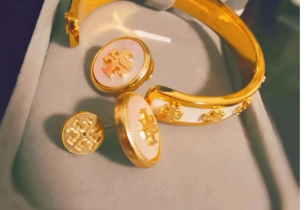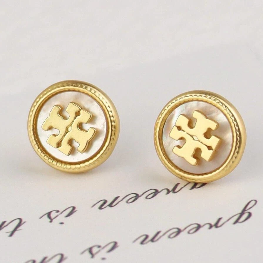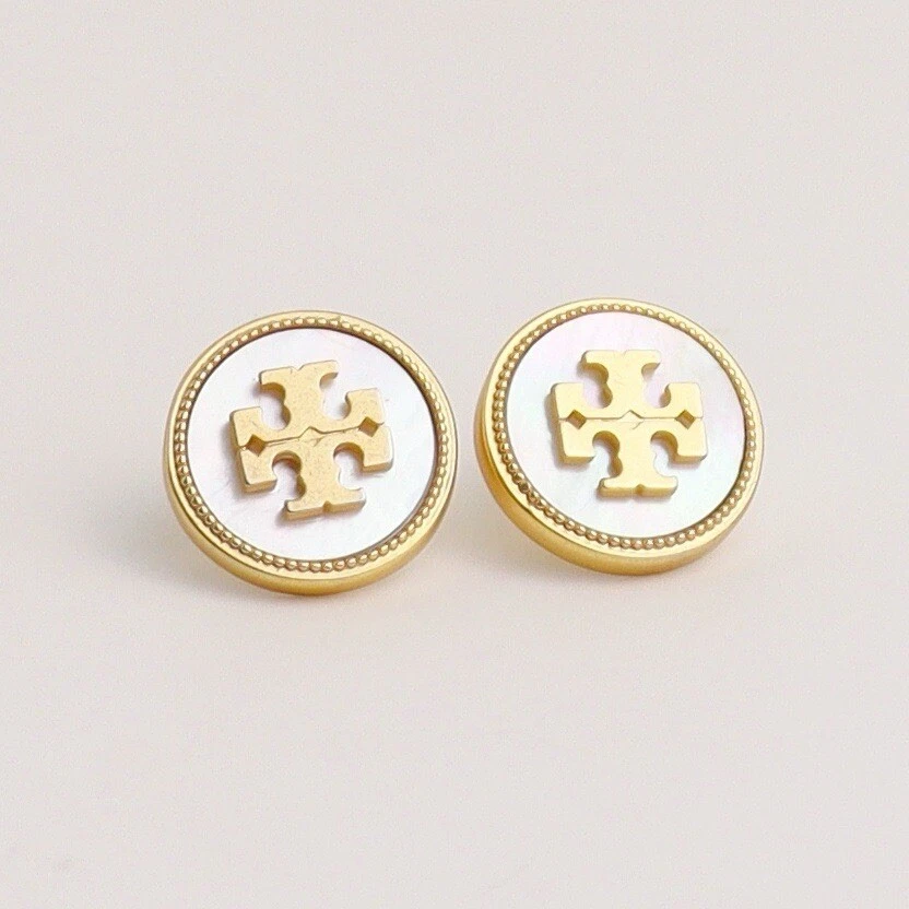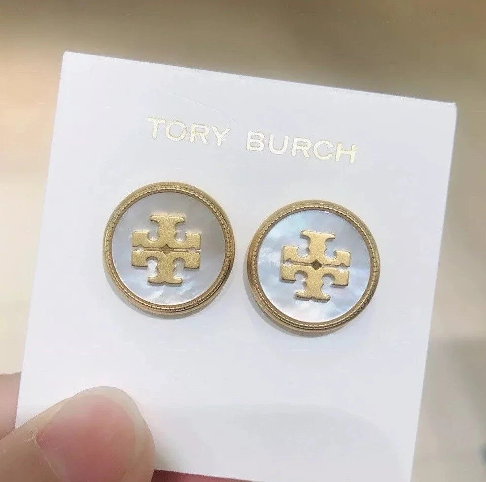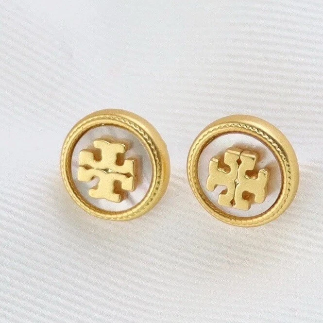 Tory Burch Classic Double Y Logo Lady Earrings Nature Shell Color