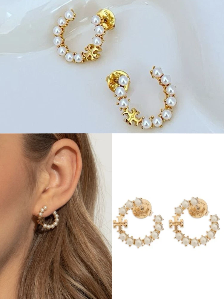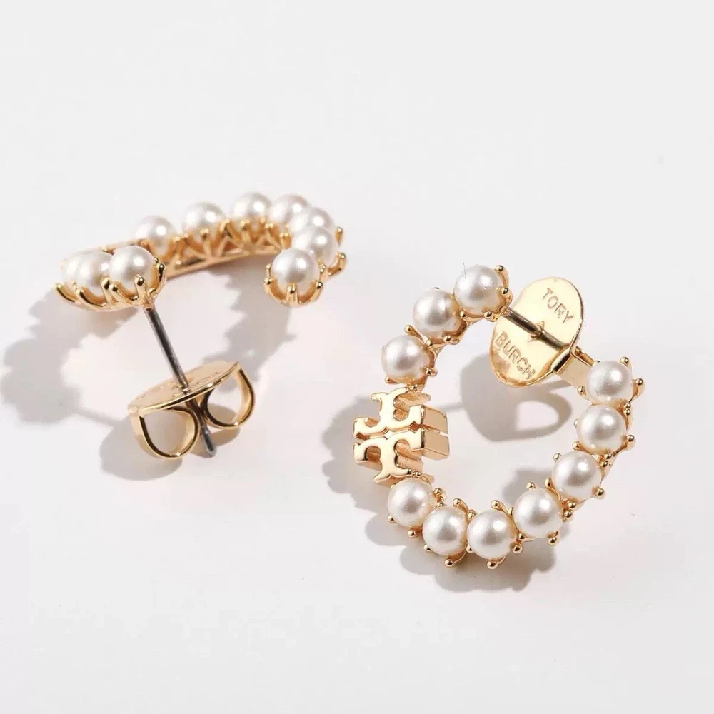 Tory Burch Pearl Double T Logo Perfect Design Lady Nice Earring