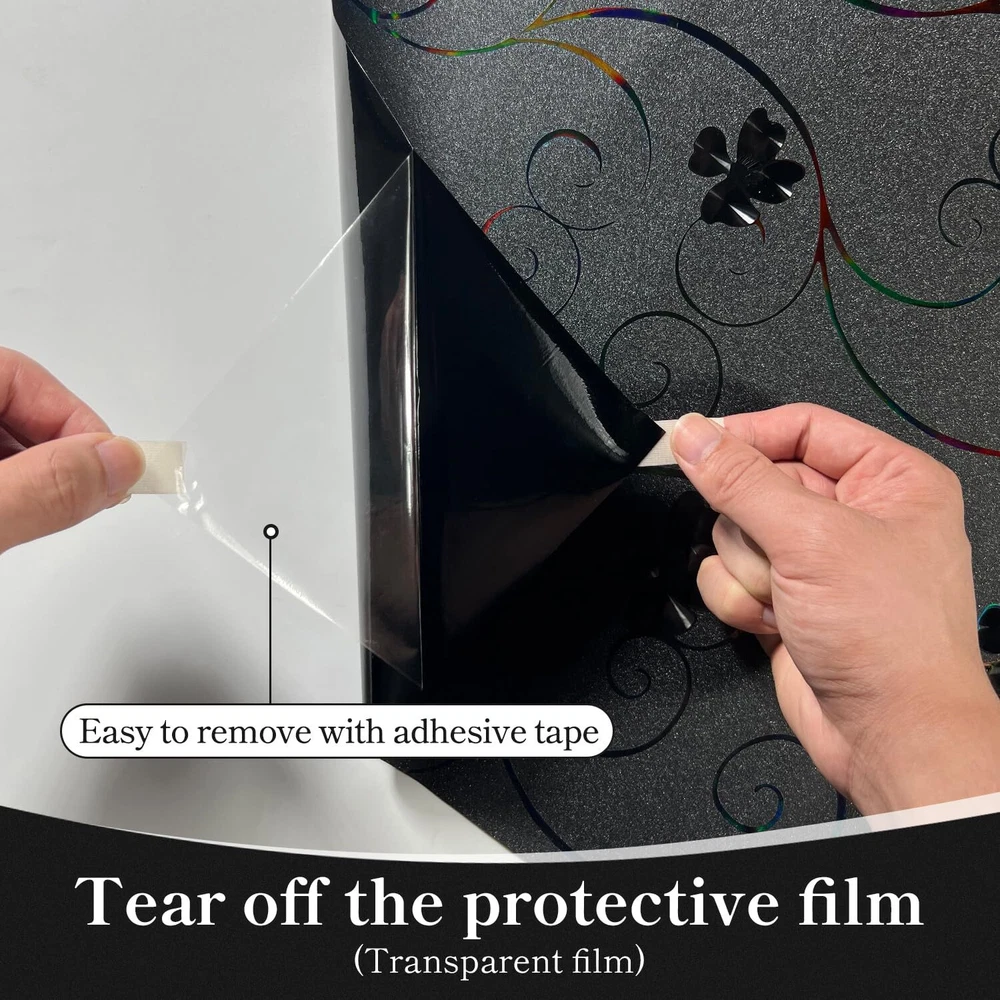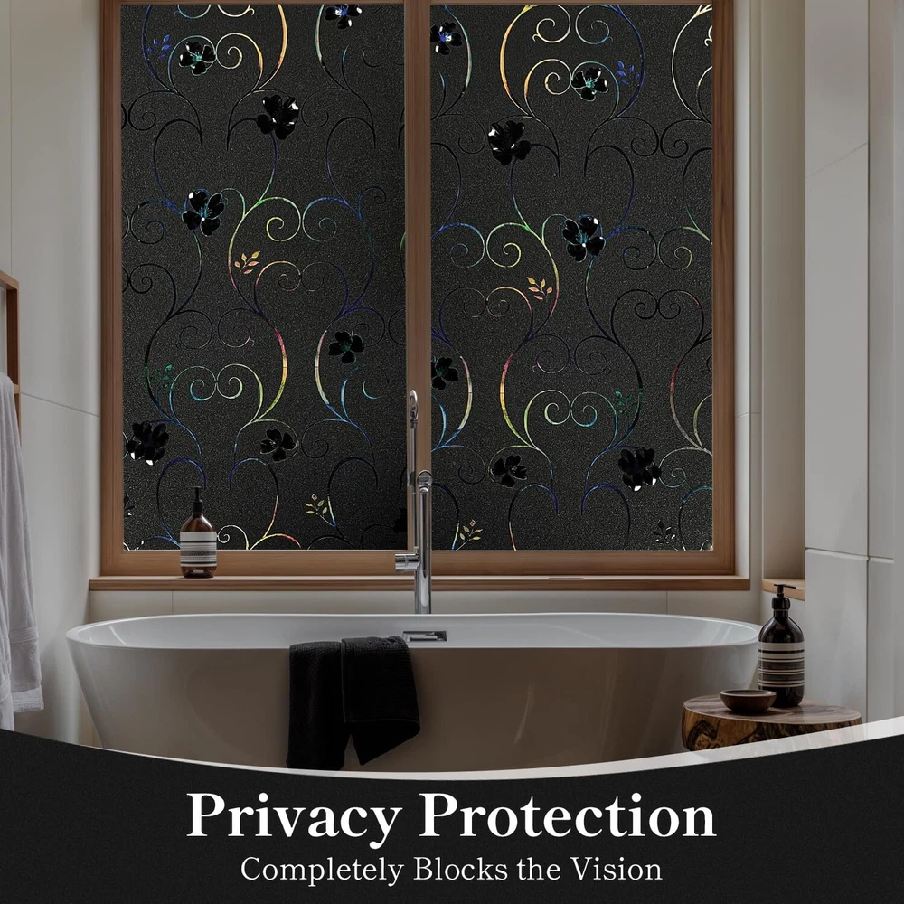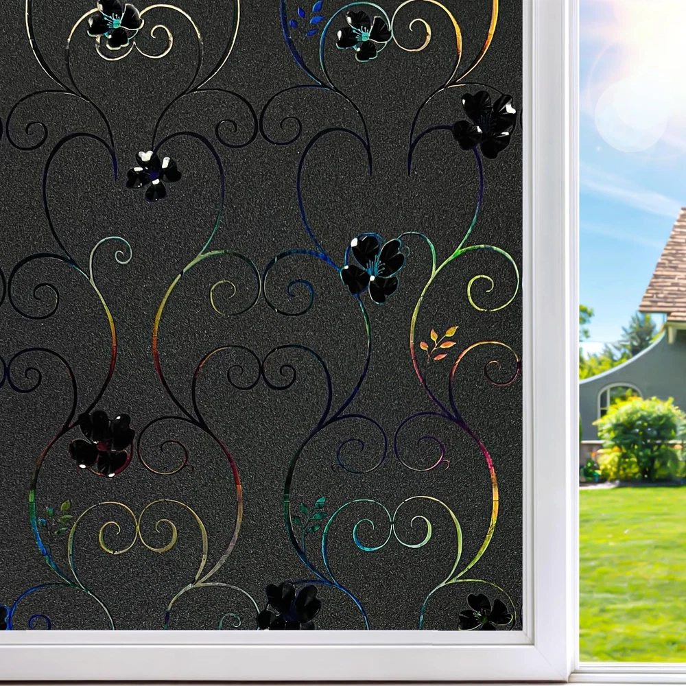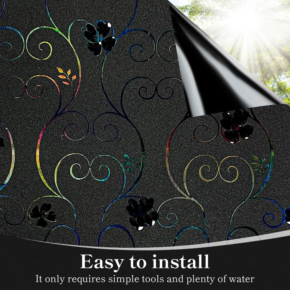 【Exquisite Design】The surface of the stained glass window film is designed with flower pattern and has a 3D rainbow effect. Easily transform clear window glass into decorative glass. 3D Rainbow effect may vary slightly depending on lighting and usage environment. When light hits it, it emits iridescent light and looks elegant and stylish. The flower pattern of the window film itself is black and uses the principle of light refraction to create a rainbow effect. 【Privacy Protection】Blackout window film can block the outside view and completely block outside light from entering the room, protecting your privacy and preventing light from affecting your life, creating a private and comfortable dark space for you. Great for daytime sleeping and home theater. 【Easy to Install】Rainbow window film is also very easy to install, applying quickly and easily with just water (soapy water is better). It is reusable and can be applied and removed over and over again. Even beginners can use it skillfully. Since it is electrostatically adsorbed, it can be easily removed by hand and leaves no trace after removal. (Note: Please remove the protective film on the glass film before installation. ) 【Block UV Rays】 Window film decorative can also block 99% of UV rays. Prevents discoloration of floors, carpets and other household materials, interior decoration, furniture, etc. due to ultraviolet rays.Window privacy film is ideal for installation on smooth, clean, flat glass surfaces. Widely used in glass surfaces in living rooms, bedrooms, kitchens, offices, restaurants, classrooms, hotels, lobbies and other places. (Cannot be used on rough or uneven glass surfaces) 【Note】Flower pattern window films on the market are usually cut from large rolls. Since it is difficult to keep the pattern perfectly aligned during the cutting process, especially when using the end of a single roll or multiple rolls. In order to ensure pattern alignment, it is recommended to choose a slightly larger size window film and use DIY methods to align it. This accommodates potential size differences and helps you achieve your desired results.