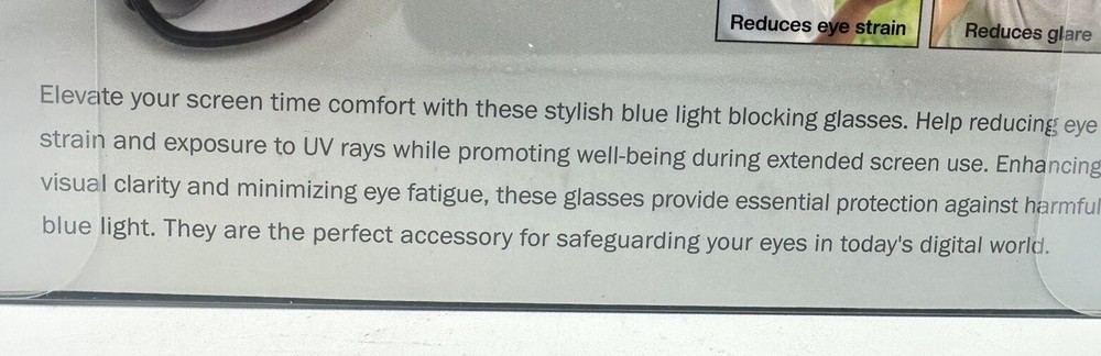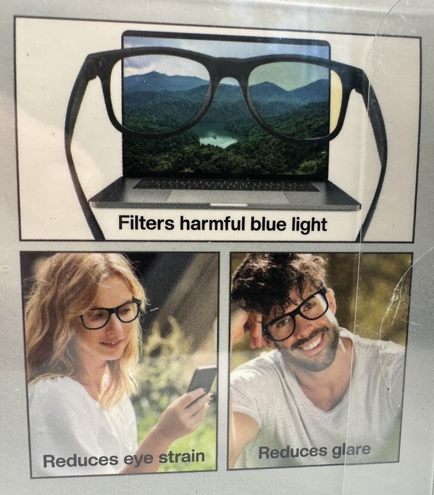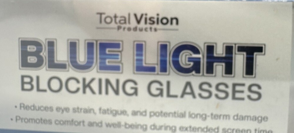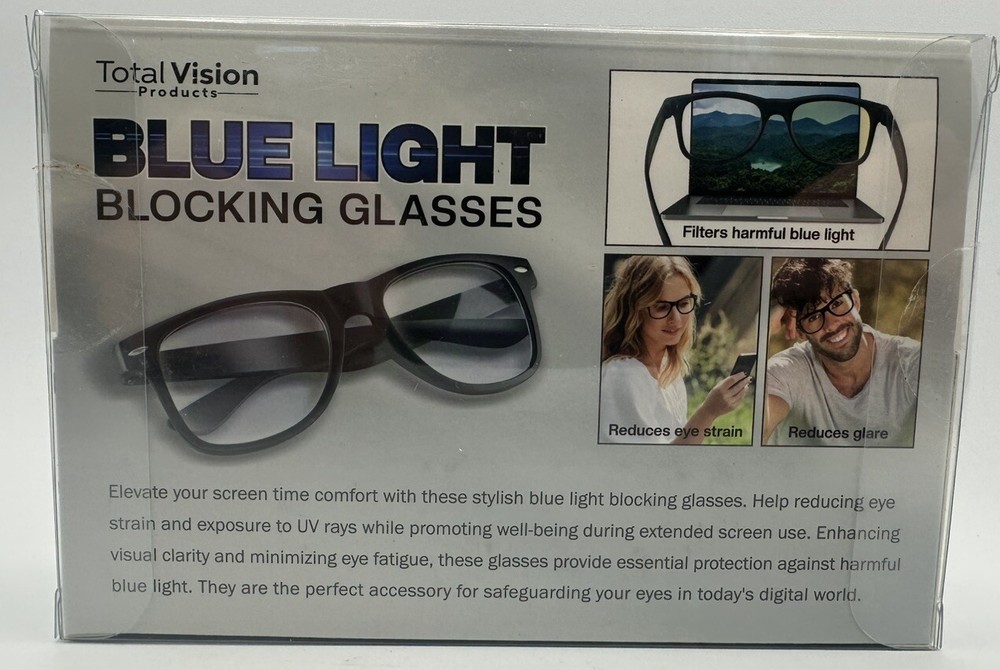 Total Vision Blue Light Blocking Glasses With Dark Frames Reduces Eye Strain.