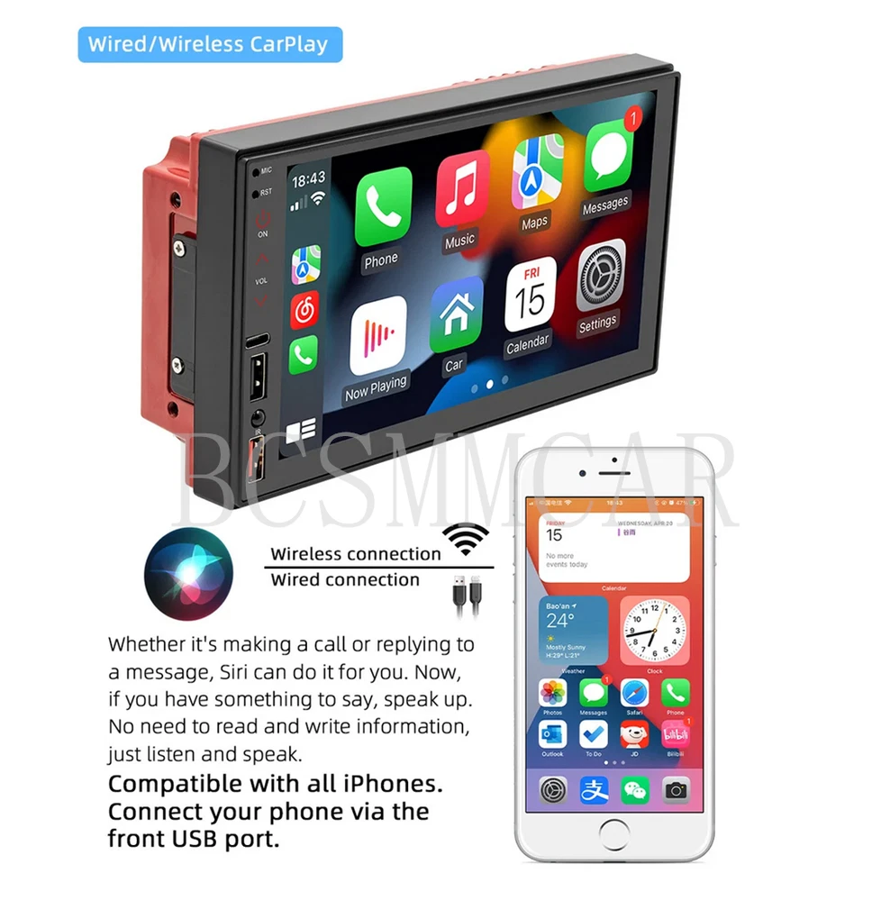 Product View Detail With 8LED Rear Camera 2 Din Car Radio For Apple CarPlay Wireless Android-Auto Bluetooth MP5 Multimedia Player Handsfree USB Audio System Head Unit Specification * 2 din CarPlay Radio head unit * 7 inch capacitive touch screen * 1024*600 resolution display screen * fit for Wireless Apple Carplay for iPhone * fit for Wireless Android Auto for Android phones * MP3/MP5 player * AM FM RDS receiver * Car radio Bluetooth functions * Bluetooth A2DP audio playback * Bluetooth handsfree calling * Bluetooth phonebook * Built-in microphone * USB charging port, type c charging port * Front and rear USB ports, support max 32GB (FAT32 format) * USB charging for phones when using CarPlay and Android Auto * Support rear camera input * Supports steering wheel control (universal analog type) * Support video input and output * 7 colors backlight * Screen brightness, contrast, hue, saturation adjustment * Audio EQ setting * Bass, treble, balance, fader, loudness, volume setting * OSD Languages: Chinese, English, Spanish, German, French, Italian, Japanese, Portuguese, Russian, Polish, Turkish, Hebrew, Korean, Czech, Arabic * 45W*4 output power * Remote control Shipping Policy Payment Method Returns Policy Shipping Policy Payment Method Returns Policy Copyright © 2017 DataCaciques Home Payment Shipping About us Contact us BCSMMCAR Store Categories Store Categories Other Product View Detail With 8LED Rear Camera 2 Din Car Radio For Apple CarPlay Wireless Android-Auto Bluetooth MP5 Multimedia Player Handsfree USB Audio System Head Unit Specification * 2 din CarPlay Radio head unit * 7 inch capacitive touch screen * 1024*600 resolution display screen * fit for Wireless Apple Carplay for iPhone * fit for Wireless Android Auto for Android phones * MP3/MP5 player * AM FM RDS receiver * Car radio Bluetooth functions * Bluetooth A2DP audio playback * Bluetooth handsfree calling * Bluetooth phonebook * Built-in microphone * USB charging port, type c charging port * Front and rear USB ports, support max 32GB (FAT32 format) * USB charging for phones when using CarPlay and Android Auto * Support rear camera input * Supports steering wheel control (universal analog type) * Support video input and output * 7 colors backlight * Screen brightness, contrast, hue, saturation adjustment * Audio EQ setting * Bass, treble, balance, fader, loudness, volume setting * OSD Languages: Chinese, English, Spanish, German, French, Italian, Japanese, Portuguese, Russian, Polish, Turkish, Hebrew, Korean, Czech, Arabic * 45W*4 output power * Remote control Shipping Policy Payment Method Returns Policy Contact US Shipping Policy All items will be checked before packing. All items are new and of high quality. Item will be shipped within 1 business days upon receipt of payment, excluding weekends and public holidays. If to USA,we will ship your order by USPS,it will take about 8-12 working days to you,and you can track it on line. If to other country,we will ship your order by China Post or Singapore Registered Air Mail,it will take about 14-21 working days to you,you aslo can track it on line. Delivery time is about 14-28 business days and it may take up to 8 weeks . Payment Method We accept payment by PayPal only ! Payment should be completed within 5 days after buyer places the order,or else an unpaid case will be opened in order to cancel the transaction. If you can not pay in time, please contact us. e-check from PayPal will only be processed once the payment clears. All of the items will be shipped to buyer's EBAY address,please confirm your address on Ebay before you buy.Your order will be usually shipped out the same or next business days once the payment is made and cleared. Returns Policy 30-day Warranty with Exchange for defective, malfunctioned, incorrect or parts-missing items. Please notify us and return the item with all parts and accessories packed and marked "FOR EXCHANGE" within 14 days of receipt. If defective, malfunctioned or parts-missing items are no longer available, a refund may be issued. All returning postage costs will be the responsibility of the buyers under all circumstances. Contact US If you encounter any problems about anything, please feel free to contact us and we will do our best to assist you solve the issue. If you are not satisfied in anyway, please feel free to let us know and give us a second chance to correct it before you decide to leave any neutral or negative feedback. Please contact us through eBay link if you have any questions. We will reply you within 24- 48 hours. Please check you spam mail if no response for 48 hours. Home Payment Shipping About us Contact us