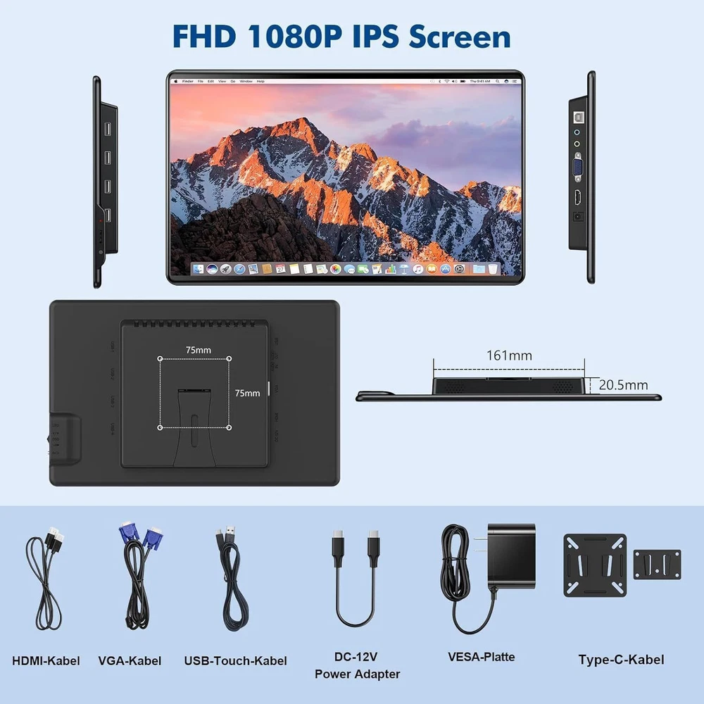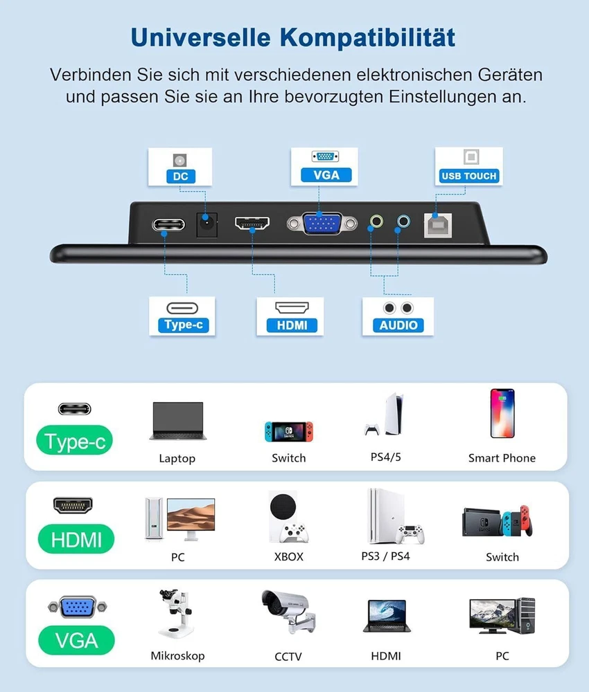 Touchscreen Portable Monitor, 14'' HDR 1080P IPS Raspberry Pi VESA HDMI VGA Used Replace with new packaging: Used monitor_the main thing is that it works like new. All items are fully tested and functional. There is a little slight dead pixels or light leakage or light spots.There also be accidental signs of wear on the goods or accessories. UPERFECT 2024 - 14.0'' 1080P 60Hz Touchsreen Monitor 💝 [Multiple Port Connections]: UPERFECT external monitor is equipped with Standard HDMI, USB-Cand VGA three interfaces, compatible with laptops, Macs, Raspberry Pi, TV boxes, PS4, Xbox, industrial medical and other equipment to meet the needs of connecting various devices. 💝 [Striking Contrast Ratio 2000:1 ]: UPERFECT touchscreen monitor features astounding 2000:1 contrast ratio,400cd/㎡and 100% sRGB to obtain better daylight contrast and no blacklight bleeding effect in the night time, creates true blacks, bright whites, sharp detail, and crisp text, delivers you excellent brightness and sharpness. 💝 [Precise Capacitive Touch Control]: 14 inch Touch Screen with Full HD IPS 1080P is smooth feel, and support swipe, scroll, drag and pinch gestures to help you get tasks done more efficiently. No extra driver needed, just connect the touch cable we provide to your device to achieve the touch function. 🌵NOTE: For mobile phone,game 💝 [Revel in Symmetrical Narrow Border]: A good look everyone will flip for. The symmetrical narrow border, full-screen and rounded edges make UPERFECT monitor body smooth, which looks beautiful and textured. UPERFECT sleek portable display can be for business, for work, for learning, for industry, or you can personalize it. 💝 [VESA Mountable & Complete installation package]: VESA-compatible screws (75mm x 75mm @M3) special package for the monitor has been presented for you to facilitate your installation, and ensure the monitor can be easily mounted to on the wall or desktop with monitor arm or stand, making your space planning more flexible. Speci fication: Screen size: 14-inch Panel Type: IPS 170°Full Viewing Angle Resolution: 1920 x 1080 Aspect Ratio: 16:9 Brightness: 400 cd/m2 Contrast ratio: 2000:1 Refresh Rate: 60Hz Speakers: Dual Speaker Screen Type: Mirror Color: Black What's In the Box? 1x 14" Portable Monitor 1x Standard HDMI Cable 1x 5.5mm DC Power Cable 1x Micor USB Power Cable 1x Manual Support Single Type-C Cable For Display & Power Device Model - Mobile Phones Support USB 3.1: For Samsung: Samsung Galaxy S8, S8+, S9, S9+, S10, S10+, S10e,S20,S20+,S20 Ultra,S21,S21+,S21 Ultra,S22,S22+,S22 Ultra, Note 8, Note 9,Note 10 For Huawei: P50 Pocket/40 Pro/40/30/20/10/9 Series, Mate X/Xs/X2/40 Pro/40/30/20/10/9 Series, Honor Note 10,Honor Magic V/3/Pro/Pro+/4/4 Pro/4 Ultimate; For SONY: Xperia 1 / 1 II/1 III/1 IV/5/5 II/5 III/10 III/Pro/Pro-I; For OnePlus: 7/7 Pro/8/8 Pro/9/9R/9 Pro; For OPPO: Find X3 Pro/Reno 10x Zoom/Reno 5G/R17 Pro (OPPO RX17 Pro in Europe); For LG: V60/V50/V40/V35/V30/V30+/V20 Series,G8/G7/G6/G6+(with Dec 2018 update)*functionality has not been tested*/G5 Series,Q8; For HTC: 10/U Ultra/U11/U11+/U12+/U19e,Exodus 1; For ASUS:ROG Phone/Phone II/Phone 3/Phone 5/Phone 5s Series,ZenFone 3 Ultra,ZenFone AR,ZenFone Ares; For Motorola: Edge+/Edge S (China variant)/Moto G100 (global version for European market)/ Edge 20 Pro/30 Pro(global variant)/X30; For Xiaomi: Black Shark 2/3/4; For ZTE: Axon 9 Pro/10 Pro,Nubia Red Magic 6S Pro/7/7 Pro; Others: BlackBerry Key2,BQ Aquaris X2,Essential Phone,Fairphone 4,Lenovo Legion Phone Duel/2 Pro/Duel 2,NOKIA 9 PureView, Microsoft Lumia 950/950 XL, HP Elite x3,Razer Phone/Phone 2,Fairphone 4; *NOTE: If you can not find your devices above, please use IOS/Android to HDMI Adapter for connecting. - Laptops Support Thunderbolt 3 or USB 3.1: For Apple: Apple MacBook Pro (Late 2016) and newer,Apple MacBook Air (Late 2018) and newer ; For Huawei: MateBook D/X/X Pro/E/13, MagicBook; For ASUS: ZenBook, U4100UN, U5100UQ, ROG Series; For HP: EliteBook Folio G1, Spectre 13,ZbookZbook Studio; For Dell: G3/G5/G7 Series, Inspiron 5000/7000 Series, XPS12/13/15; For Lenovo: Thinkpad E580/T470/T470s/T480/T480s/X1 Carbon (2017-2019); For MIUI: Air 12.5"/133.3", Pro 15.6", MI Game NoteBook For Google: ChromeBook Pixels For Razer: Blade Stealth Series (All) For Microsoft: Surface Book 2 Others: Acer Swift 5,MSI GS60 6QE,Gigabyte Aero 15x/15 x9/15 y9; *NOTE: If you can not find your devices above, please use mini HDMI cable instead. Warm Tips: If the screen signal is poor or flickers, make sure you are only operating the monitor with the adapter that came with it. With other adapters, the voltage may be insufficient. If the screen still flickers, please swap the HDMI cable to test. Please check the Type-C port of your PC/Laptop whether it supports the transmission of audio and video signals (Thunderbolt3). If it doesn't, you'll need a "Type-C to HDMI" adapter for signal transmission. If "No Signal" or "Power Saving Mode" appears, please switch the Type-C cable head to another side and reconnect the monitor. The monitor turns on in the default power save mode. (Note: No save function in sleep mode, you need to close it manually.) The E07 portable monitor has no built-in battery,you can't charge it.you cant touch it, just connect and get started. Terms of sales Payment Delivery details About us Contact us Terms of sales About OUR's Item ◆ OUR ’s monitor(O r other item ) is our factory products, high quality.If you are satisfied my service, Could you please leave a Positive Feedback to us.Thanks a lot. ◆ OUR ’s monitor is electronic product,new industry, new technology; If there is malfunction or problem in product or service.For example, Unstable Voltage, No reponse, Screen problem, Don't know how to use. You can contact us to solve the problem.We will solve any problem in 24 WORK hours efficiently. Please Don't open Return Requested or leave Negative feedback(it is important to us,Buyers should be patient when encounte