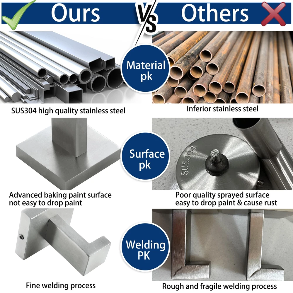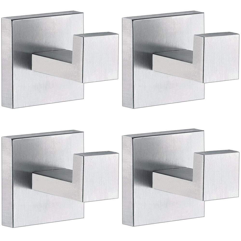[Great Performance to Anti Rust]: The towel hooks for bathroom is made of metal SUS304 type high-quality stainless steel, added with 18/10 chromium/nickel content, corrosion-resistant, heavy-duty, and never rust. 4 protective layers are added to SUS304 stainless steel to make it more sturdy, firmer, more rust-proof and smooth, without sharp edges.Suitable for the humid environment such as bathroom and kitchen. [Brushed Nickel Finish]: Our Brushed Nickel towel hook is hand brushed stainless steel finish and compatible with your modern bathroom design and build to resist corrosion, scratches and tarnishing.Stylish wall hooks, beautiful and fashionable. [Super Easy to install & Remove]: The coat hooks wall mounted are very easy to install and remove and come with all hardware screw accessories. With detailed installation guide, the bathroom towel holder is easy enough to be installed by yourself without professional installer.All accessories included as well as one instruction to refer to. The job can be done within a few minutes. [Multi-applications & Multi-Functions]: Our bath towel hooks is ideal for hanging towel, coat, hat, bag, belt, key, scarf, suitable for bathroom, kitchen, bedroom, restroom, garage, laundry room, hotel, RVs, campers, boats and cabinet.The towel hanger for bathroom can be install to different surfaces such as marble, ceramic tile, wood, etc. [You Will Get]: 4 pcs bathroom robe hooks and 1set mounting accessories.If you have any problems about the products & installation,please contact us freely on Amazon.