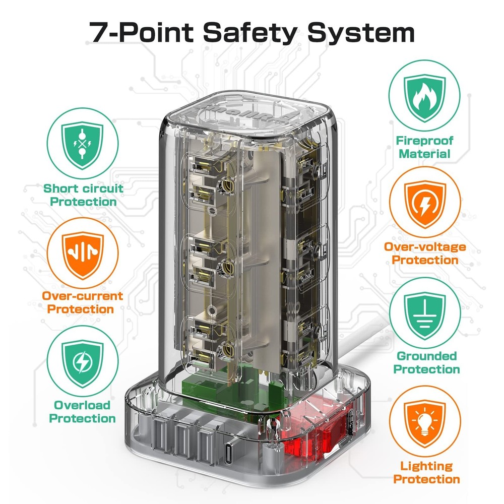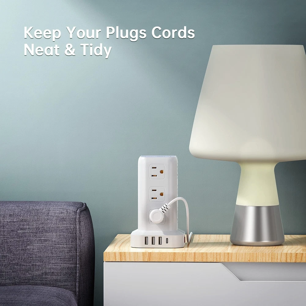 Tower Surge Protector Power Strip with 12 Outlets 4 USB (1 USB C), 6.5Feet Extension Cord with Multiple Outlets, Charging Station, Power Strip Tower, Office Desk Supplies Product Details Size: 6.5 FT Style: Fast Charge 3A Brand: SMALLRT MPN: yun-dong-199 UPC: Does not apply EAN: Does not apply Brand: SMALLRT Color: White Total Power Outlets: 12 Voltage: 125 Volts Special Feature: On And Off Switch Product Dimensions: 6.5 x 5.47 x 0.04 inches Item Weight: 1.19 pounds Item model number: yun-dong-199 Date First Available: January 15, 2022 Manufacturer: SMALLRT 16 IN 1 Tower Power Strip with USB-C- This surge protector power strip with 12 AC outlets and 4 smart USB (1 USB C) charging ports(Total 5V/3.4A) can power up to 16 electronic devices simultaneously. Integrated circuit breaker and 1200 Joules protection rating ensure the safety of your electronics. Surge Protection & Overload Protection- The surge protector tower with overload protection protects against spikes and fluctuations. The reset/off switch with integrated circuit breaker for overload protection of all outlets. This power strip has overload protection, short-circuit protection, over current protection, over-voltage protection and overheating protection. It will automatically cut power to protect connected devices when voltage surge is overwhelming. USB- C Fast & Smart Charge- 4 USB ports total 3.4A, each USB A port features 2.4A Max output. USB C charging port features 3A Max. Built-in with smart technology, detecting charging devices and deliver optimal charging speed automatically, compatible with most USB devices. Flat Plug Extension Cord with Multiple Outlets - The Low-profile flat plug fits easily in tight spaces, 45 right angle plug design prevents other plugs blocking. The 6.5FT upgraded extension cord is made of pure copper, which is very thick and has better current carrying capacity . Environmental protection and fire-resistance PC shell with flame retardant at 1382F makes it more safe and longer lifetime. Wide Space & Space Saving- With the vertical tower design, this surge protector takes a little space while powering even though 16 devices at same time. The steady base with anti-slip mat on the bottom effectively avoid wobbling and slipping around. 12 AC outlets with long space in between, it easier to use for all kinds of equipment and without blocking each other.