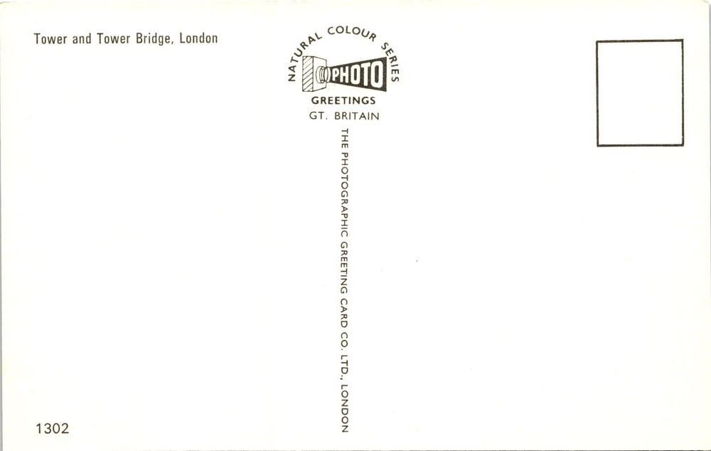 The postcard features an image of the Tower of London and Tower Bridge in London, Great Britain. The Tower of London is a historic castle located on the north bank of the River Thames. It was founded in 1066 and has served various purposes over the centuries, including as a royal palace, prison, and fortress.
