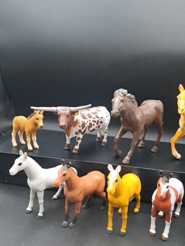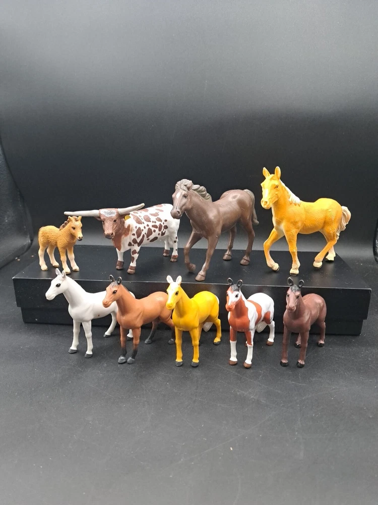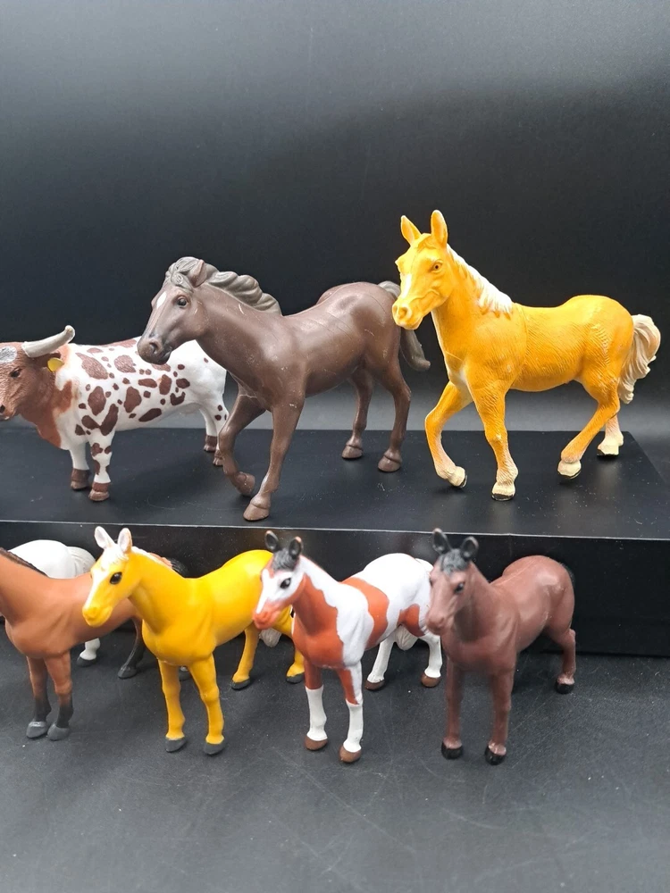 This lot of 9 toy horses is a must-have for any collector or lover of horses. These model horses are beautifully crafted in China and will make a great addition to your collection. The variety of horses in this lot will allow you to expand your collection and add some unique pieces to your display. These horses are perfect for anyone who loves horses, whether you are a collector or just looking for some unique decorative pieces. The attention to detail on these figurines is impressive and they will surely make a great conversation starter. Don't miss out on the opportunity to add these beautiful toy horses to your collection.