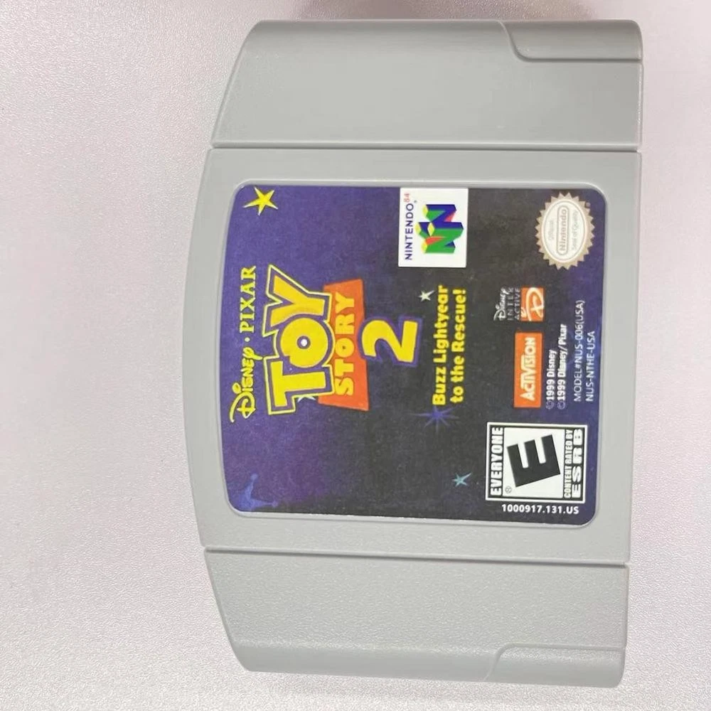 Toy Story 2 Buzz Lightyear to the Rescue! - Nintendo 64 (N64) Collector's item Title: Toy Story 2: Buzz Lightyear to the Rescue! - Nintendo 64 (N64) NTSC-U/C Description: Embark on an intergalactic adventure with Toy Story 2: Buzz Lightyear to the Rescue! for the Nintendo 64. Join Buzz Lightyear as he sets out on a heroic mission to save Woody from the clutches of the evil toy collector, Al. This action-packed platformer brings the beloved characters from the Toy Story universe to life with vibrant graphics and engaging gameplay. Navigate through various levels, solve puzzles, and battle enemies to bring Woody back home safely. Perfect for fans of the Toy Story franchise and retro gaming enthusiasts alike, this game promises hours of fun and excitement. Get ready to experience the magic of Toy Story 2 on your N64 console!