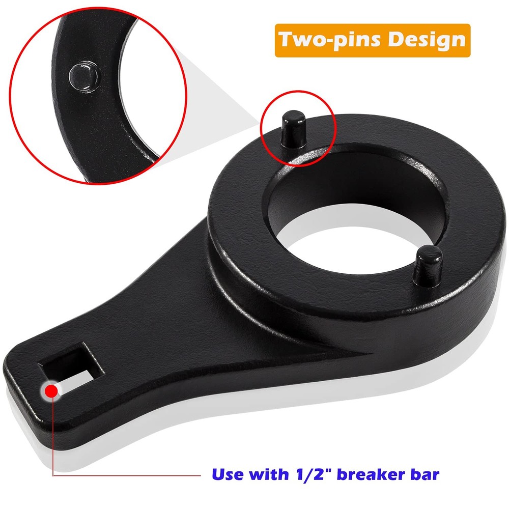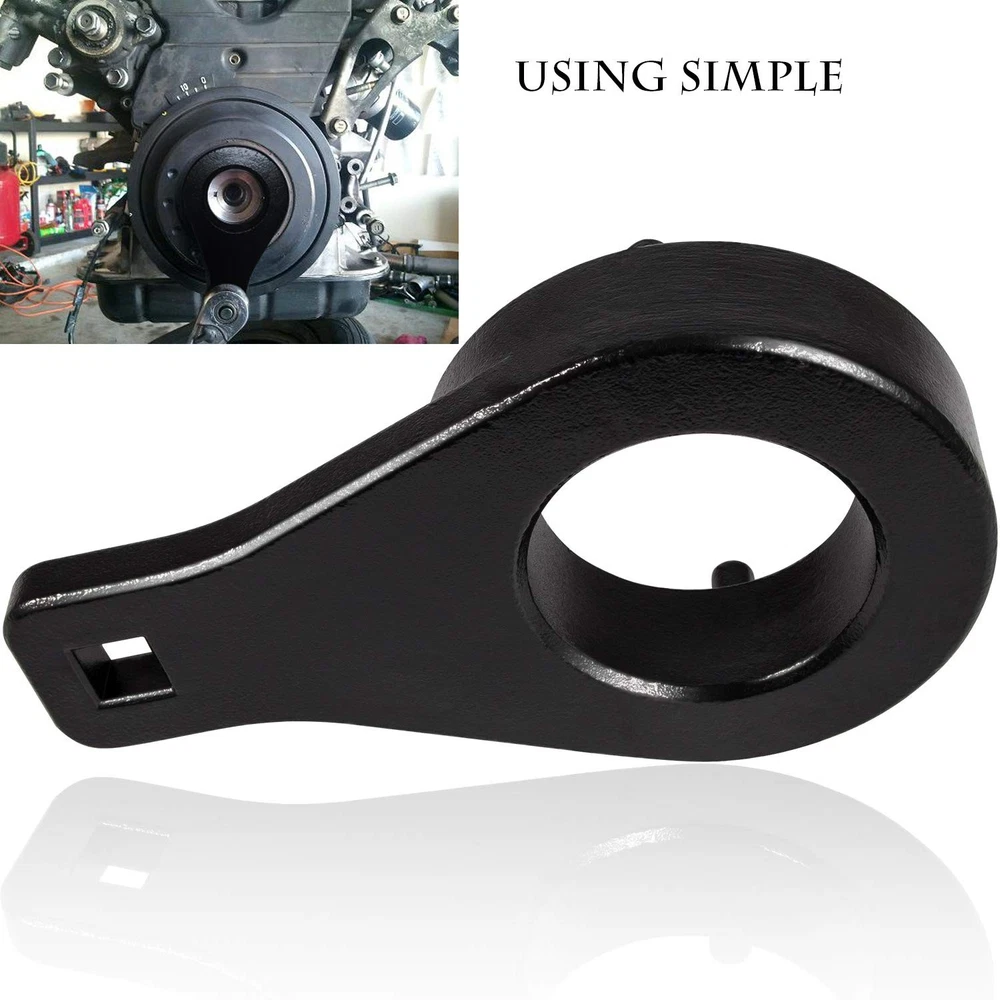 Feature: 1)Allows factory torque to be attained to seat the pulley properly Works with 4 Runner 1996-2002, T100 pickup 1996-1998, Tacoma pickup 1996-2004 and Tundra pickup 2000-2004 2)Meets the standard of excellence 3)Home made tool to hold the crankshaft pulley in place to remove the harmonic balancer 4)Necessary for both removing and installing GREAT FITMENT: Fit for 4 Runner 1996-2002, T100 pickup 1996-1998, Tacoma pickup 1996-2004 and Tundra pickup 2000-2004. DURABLE MATERIAL: Made of high quality metal material, solid and durable, ensures a long term service. NICE DESIGN: Unique two pins design holds the harmonic damper pulley compatible with Toyota 3.4 liter V6 engines for crank bolt R&R. EXCELLENT FUNCTION:Design to seat the pulley properly, holds the pulley stationary for the center bolt to be removed, necessary for both removing and installing. After-sales Support--- If you have any question with our product, please free to contact us. Support 12 months’ Warranty.