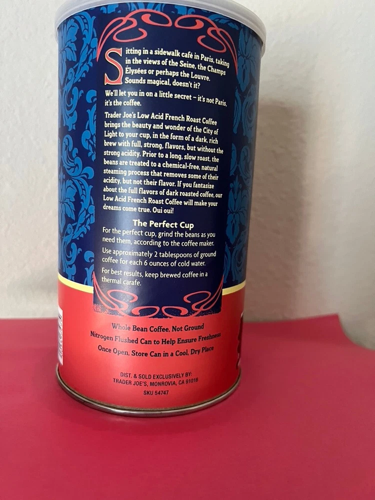 Trader Joe's French Dark Roast Low Acid Arabic Whole Bean Coffee-13 oz-New