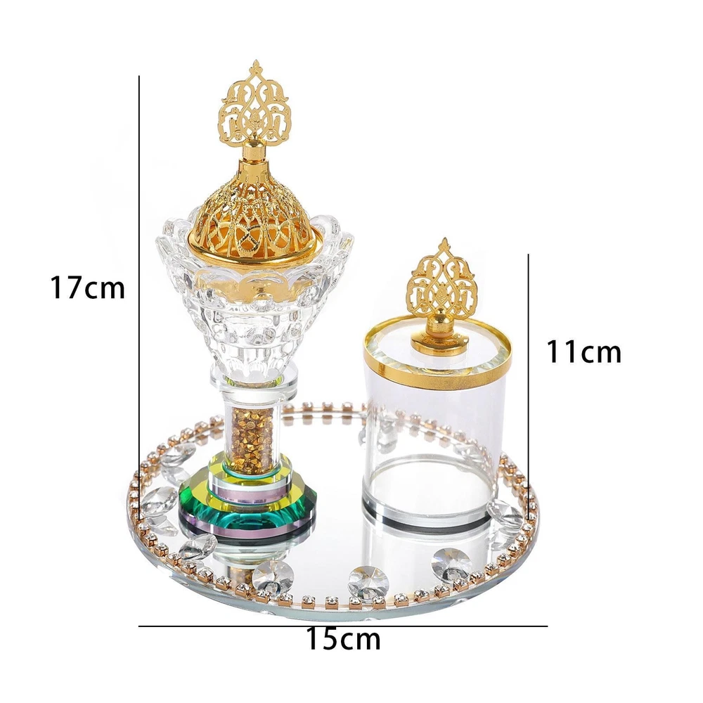 Home & Garden | Jewelry & Watches | Sporting Goods | Business & Industrial | eBay Motors | Toys & Hobbies | Health & Beauty Glass Incense Burner Set Censer Tongs Storage Jar Traditional Arabian Incense Description: 【Package Including】: Arabian incense burner set, including 1 incense burner, 1 tray, 1 tongs, 1 storage jar 【Delicate Design】: This traditional Arabian incense holder is designed with a lotus shape, has fine workmanship and details, is a nice table centerpiece, great for Ramadan decoration 【Premium Material】: This censer set is made of glass and metal material, transparent appearance, sturdy, not easy to break and ensures a long time to use 【Wide Applications】: This incense burner can be used as home decoration, handicrafts or classical furniture, etc. It is very suitable for living room, office, bedroom, meditation room, Spa, yoga, etc 【Nice Gift】: The incense burner set is a great gift for friends or family on Ramadan, holiday, housewarming, etc Specification: Material: Glass Iron Size Chart: 15cmx17cm/5.91inchx6.69inch Package Includes: 1 Incense Burner Set Note: Please allow slightly errors 1-2cm differences due to manual measurement. Payment Shipping Returns If you are bidding or ordering more than one item, the items will be combined into one order automatically thus you can pay altogether. If you want not to combine, please buy one and immediately pay one separately. Please pay what you win in 7 days. Unpaid Dispute will be automatically open if payment is not received after 7 days. If you pay the bill after received unpaid dispute, please email us to close the unpaid dispute. Because the unpaid dispute will not be closed automatically, and we may ignore it. The buyer is responsible for any applicable import duties and local taxes. Please verify with your customs before making your purchase. Please verify your address during checkout. We are not responsible for any wrong or undeliverable addresses. We are committed to give you the best customer service possible. If for any reason you are unsatisfied with a purchase, please contact us and we'll assist you with a prompt solution. Please let us work on the issues. We'd like to settle any problem in a friendly manner. Please do not open a case on eBay or PayPal, or leave any negative or neutral feedbacks directly! We always reply to messages within 2 business days (off-duty at weekend). Due to the difference of time zone between Hong Kong and your location, sometimes the answer will be delayed. If you do not get a response from us after 2 business days, please check your junk or spam mailbox. Unsatisfied product can be returned within 30 days from the delivery date . We can offer a full refund or exchange, but we are not responsible for return shipping cost. Please contact us to get a RMA number before sending out your return. Feedback: 1. Since your feedback is very important to our business's development, we sincerely invite you to leave positive feedback with four 5-Detailed Selling Rating (DSR) to us basing on your satisfaction with our commodity and service. It's just take you 1 minute. 2. Unfortunately, If you are planning to give us a neutral/negative feedback because of your bad buying experience with us, please contact us at any time so as to clear up your discontent and resolve the problem. Featured Products People always bought together with