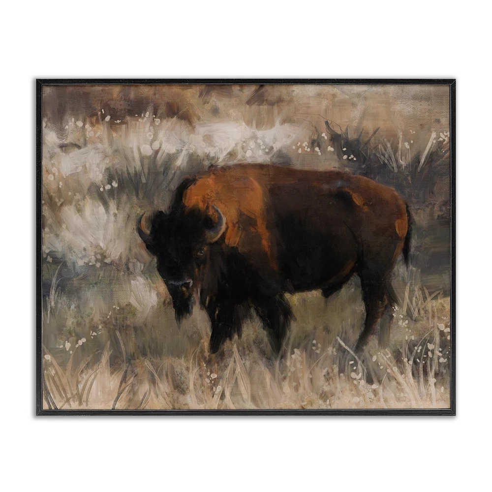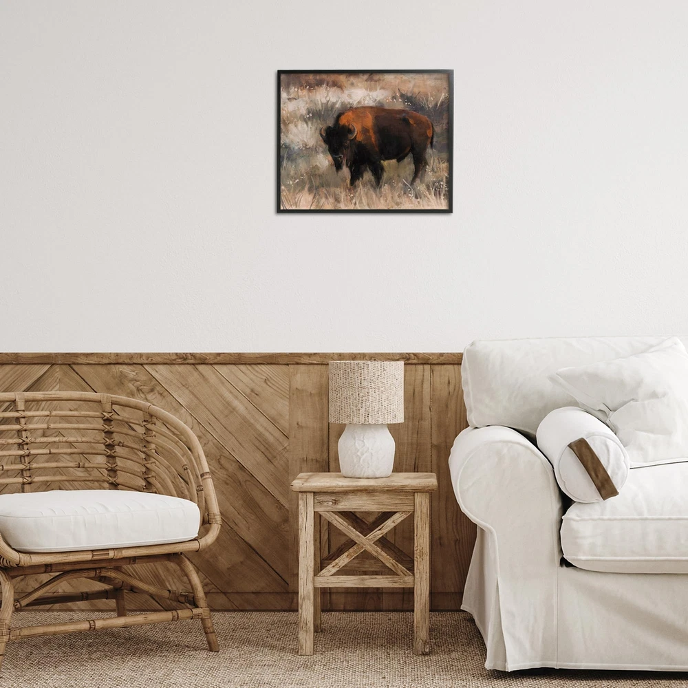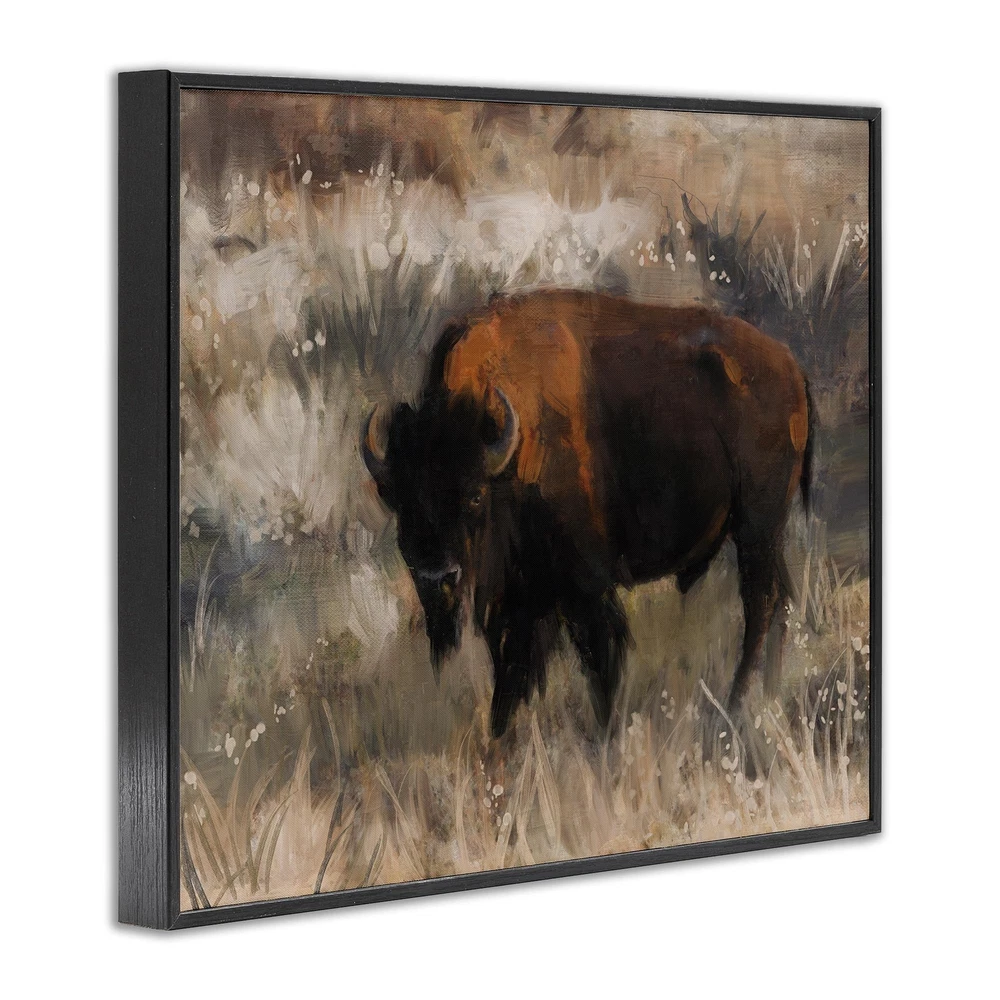 Dimensions: 20 x 1.5 x 16 Framed Framed Giclee Products are available in the sizes 14"x11", 20"x16" or 30"x24". All Framed Giclee Products have a 1.5" Depth. Wall Art is Ready to Hang with Hardware Free Hanging. No installation required. For Easy Set Up Lean or Layer Artwork on Shelf or Against Wall. Our giclée prints are carefully mounted on a durable MDF backing, and then perfectly finished in a 1.5 inch thick woodgrain frame. Mounted frame colors include black, gray farmhouse and white. Made In USA. Artwork Relates To: Animal, Buffalo, Mammal, Wildlife, Bison, Cattle, Country, Southwestern, Farm Design by Nina Blue
