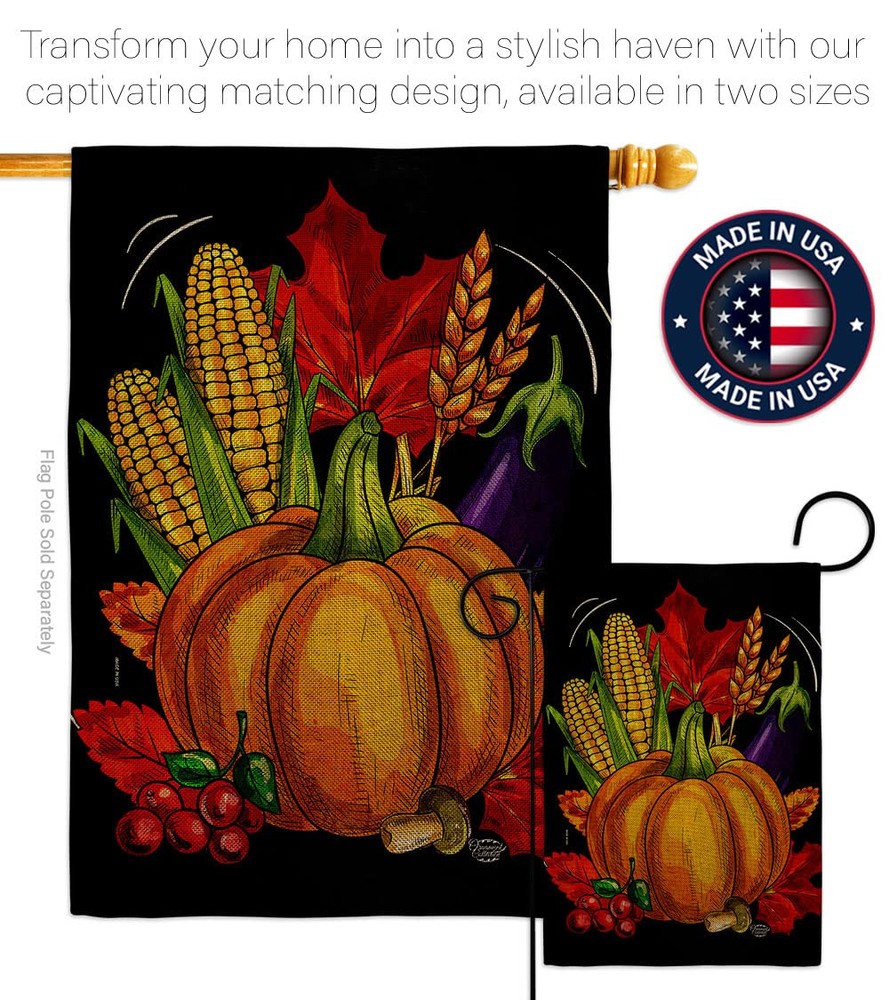 Harvest & Autumn Beautiful Large House Flags Pack - 2 SetsOrnament Collection have variety of House Flags Pack for all occasions. Uniquely design for hanging indoor or outdoor use. We are committed to offering you exceptional values. Our customers enjoy displaying our House Flags Pack for longer periods. Specification: Theme: Harvest & Autumn Size: House Flags Pack 28" x 40" Print: Double-Sided Readable: Readable Both Sides Material: Weather Resistant Double Burlap Stitching: Double Stitched Display: Vertical Hang Type: Sleeve Artist: © Ava Storey Special Features: Origin: Made In USAPackage Include: 2 pc x House Flag 28" x 40" Package Decorative FlagsFor more than a decade, we’ve been dedicated to manufacturing flags with no comparison in quality and beautiful designs. Our flags are made with our Guard material that is soft to the touch and designs can be read correctly on the flag. A feature that our customers will love. We are committed to using eco-friendly inks that won’t leave a foot print in our environment. MPN: OC-HA-HP-192654-IP-DBAE-D-US21-OC 92654 92654 PROUDLY Made In USA - Package And Product Designed In California PURCHASE WITH CONFIDENCE - From 's US Authorized Resellers MADE OF DURABLE - 100% Thick Double Burlap Fabric construction helps resist the wear and tear from frequent use TEXT READABLE BOTH SIDES - House Flags Pack Double-Sided Print DURABLE FLAG - Double stitching panels on multiple rows and high quality Sleeve to provide lasting strength VIBRANT COLORS - With UV-Resistant Maintains Its Colors All Season Long FEATURES - Sleeve Hanger fits standard Banner/Flagpole, Bracket, Arbors or stand, SOLD Separately