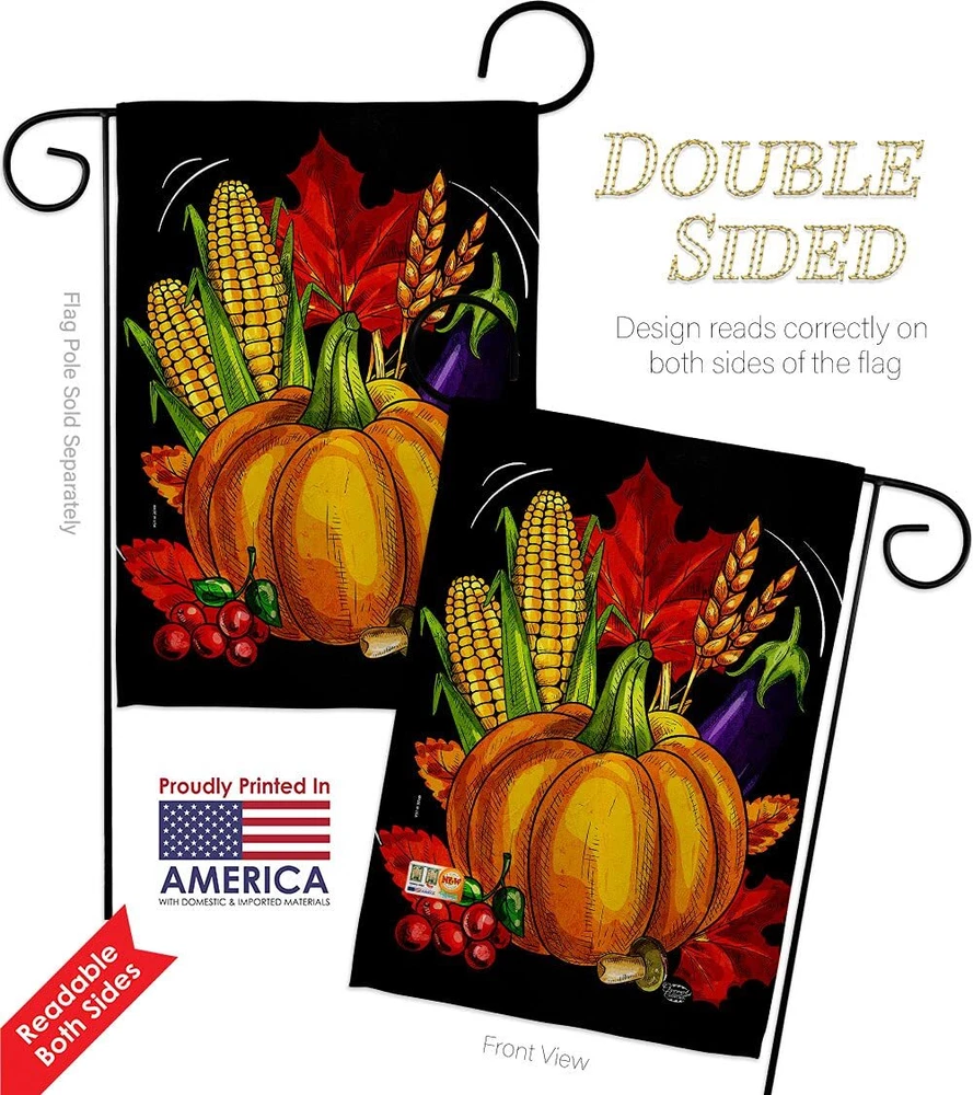 Traditional Thanksgiving Garden Flag - 2pcs Pack Fall Harvest & Autumn Scarec...