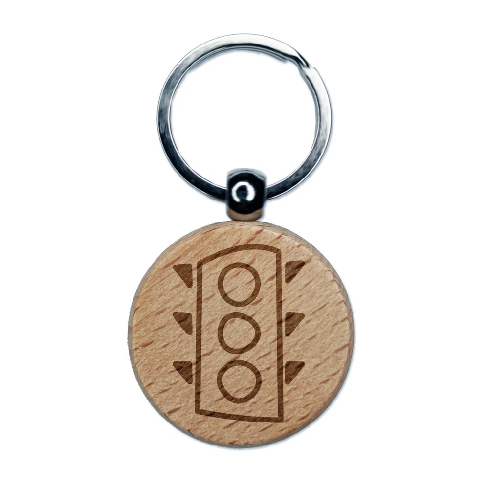 Traffic Light Doodle Engraved Wood Round Keychain Tag Charm