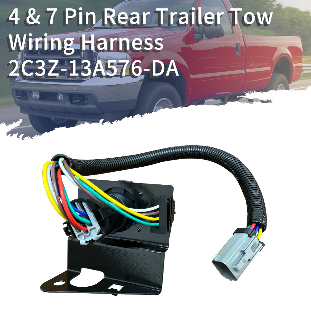 Product Description ● Condition: NEW ● Manufacture Part Number: 2C3Z-13A576-DA ● Features: 1) 100% NEW With High Quality 2) Easy installation and durable. 3) A perfect aftermarket replacement 4) Reasonable Price with stable shipping ● Fit For: 2002-2004 Ford F-250 / F-350 Super Duty Pickup Truck All Models w/ Light and Heavy Duty Trailer Tow Package(s) Equipped with the 7 & 4 Pin Connector Professional installation is recommended ● Note: Please make sure the Part number in our listing is the same as your original one. Package included: 1 x Trailer Tow Wiring Harness Notice : 1. If you are not completely satisfied with your purchase, you may return it for a refund or exchange it for a replacement. We only require that you contact us within 14 days of receiving your item and return it in the same condition it was received. 2.Please check the model before your purchase and compare the position of the screw hole In case of wrong purchase. 3.If you have any questions, please contact us by email and we will solve them for you.