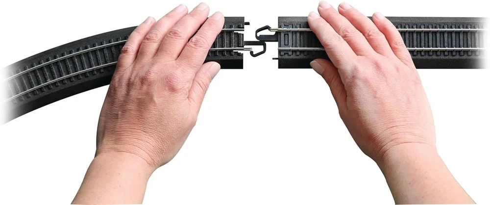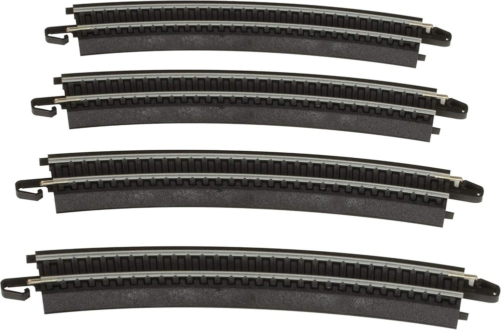 Trains - Snap-Fit E-Z Track 18” Radius Curved Track 4/card - Steel Alloy Rail With Black Roadbed - HO Scale E-Z Track System - Snaps Together, Stays Together on Floors, Tables & Carpets Set Up is Quick, Easy and Fun - No Nails, Screws, or Special Tools Needed Steel Alloy Rail with Black Roadbed Easy to Use For Both Temporary and Permanent Train Layouts HO Scale 1:87 - Modeled From AAR Track Engineering Dimensions Snap-Fit E-Z Track 18” Radius Curved Track (4/card) - Steel Alloy Rail With Black Roadbed - HO Scale. 's exclusive E-Z Track system makes set-up quick, easy and fun. E-Z Track is designed to Snap Together and Stay Together on Floors, Tables and Carpets. This product features Steel Alloy Rail with Black Roadbed. 18” Radius Curved Track is the basic curve of the E-Z Track system. It can also be placed on the inside of 22” radius curved E-Z Track for double-track mainline realism. Four pieces of track make up one-third (120 degrees) of a 36” diameter circle. From the Manufacturer 's exclusive E-Z Track system makes set-up quick, easy and fun. Steel Alloy rail. Black roadbed. E-Z Track System - Snaps Together, Stays Together on Floors, Tables and Carpets.
