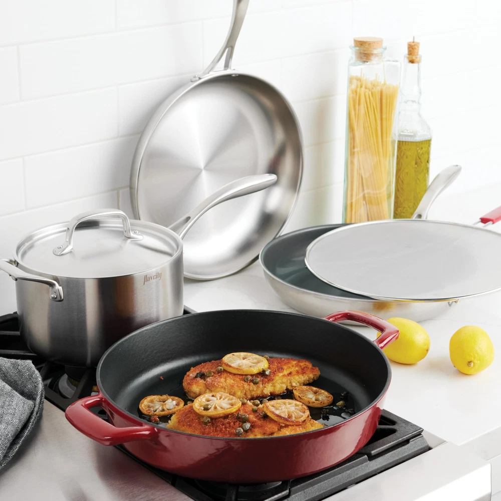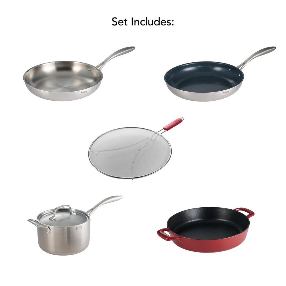 Tramontina FlavCity 6 Piece Cook Set Ideal for soups, stews and sauces, sauteing, searing and braising Custom designed by FlavCity's, Bobby Parrish Built tough and guaranteed to last Set includes: 12-in Tri-Ply Clad Fry Pan, 12-in Tri-Ply Clad Fry Pan with Ceramic Interior, 4-Qt Covered Sauce Pan with Helper Handle, 12.5-in Enameled Cast Iron Braiser, 13-in Splatter Screen Shipping We offer FREE shipping on all orders! We ship within Three business days of payment, usually sooner. We use a selection of shipping services such as UPS, FedEx, USPS etc. We only ship to the lower 48 states, no APO/FPO addresses or PO Boxes allowed. Local pickups and combined shipping options are not provided at this time. Return You can return a product for up to 30 days from the date you purchased it. Any product you return must be in the same condition you received it and in the original packaging. Please keep the receipt. Payment We accept payment by any of the following methods: PayPal Please pay as soon as possible after winning an auction, as that will allow us to post your item to you sooner! Feedback Customer satisfaction is very important to us. If you have any problem with your order, please contact us and we will do our best to make you satisfied. Contact Us If you have any queries, please contact us via ebay. We usually respond within 24 hours on weekdays. Please visit our eBay store to check out other items for sale! Thank you for shopping at our store.